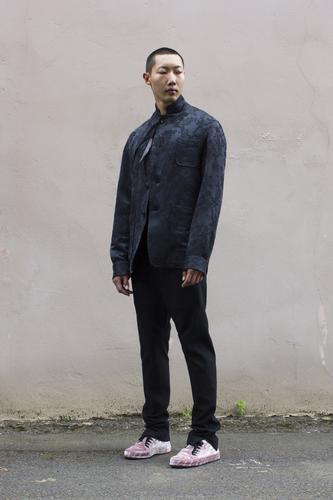 UJNG have presented for the AW17 season a full look from the show with the Ann Demeulmeester Silk Wood Coat, Off-white Brushed Shirt and Black Howard Trousers.