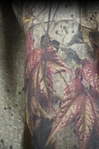 Also being offered from UJNG are the black cotton and nylon curved pants – intricately seamed, with a fitted style and the tribal inspired black linen zulu scarf with detailed stitching.