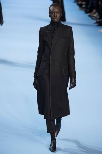 With Australian model Julia Nobis opening the show (and also closing) wearing a stylized leather jacket, cut above the hip and reshaped into a symmetrical display, presented with a beautifully crafted yellow long skirt – complete with haute couture inspired plissé, a homage to Japanese designers such as Issey Miyake. Haider Ackermann’s presentation for his Spring/Summer 2017 collection expands into what seems as an austere affair, despite the exaggerated colour palette, there is a deliberate clash of concepts.