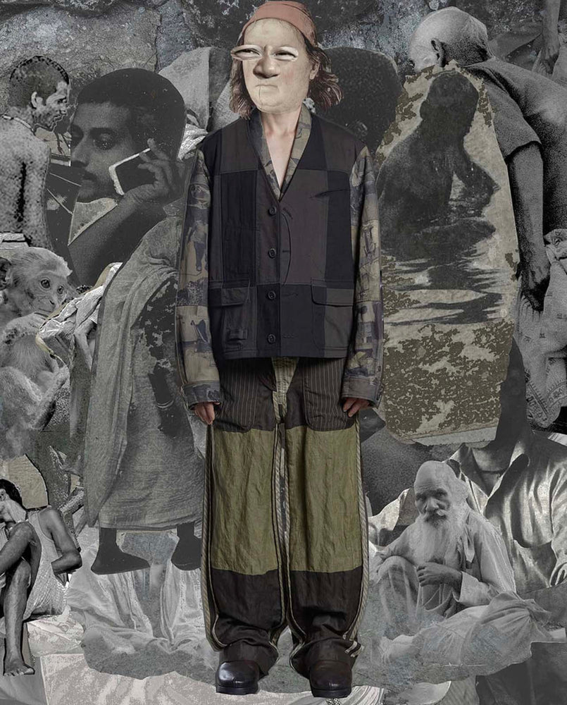 Her satirical and surrealist works where re contextualised, cut, chopped and re worked into new collages with images of Ziggy Chen’s trip to Varanasi. These photo-collages formed the basis for the prints featured in the collection and look book. As well as the accompanying animated film for the collection, also titled “CollageMory”, which is an animated collage where models with animal heads veer through a surreal cultural Dadaist collage. A lion headed model flying through sky, whilst another with a fishes head dives deeper into the surreal collage world. The accompanying look book for the collection follows suit with collage replacing the models heads and forming the background.