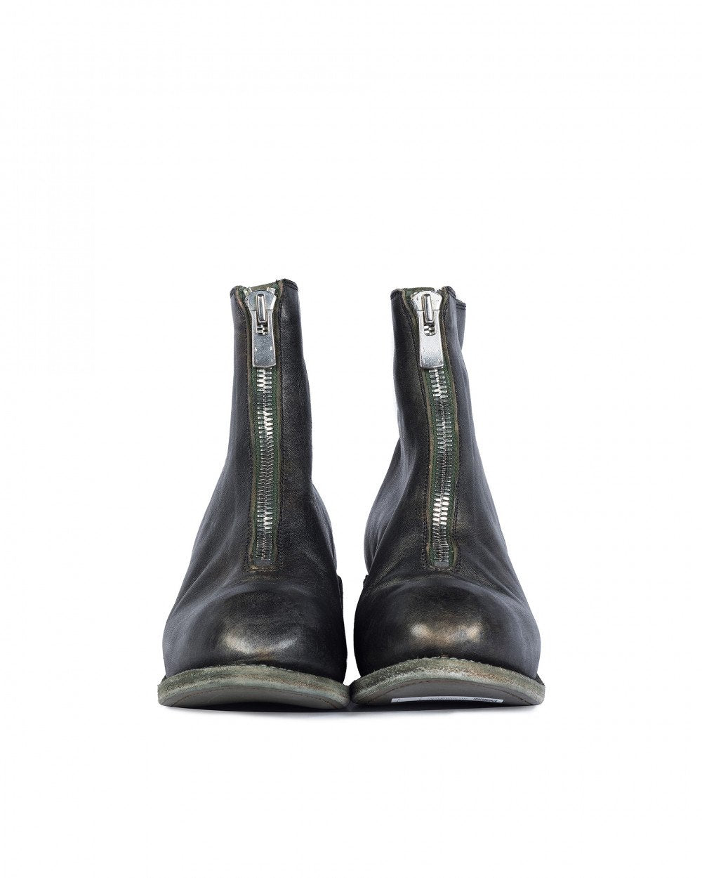 Front zip closure. Tonal stacked leather heel and sole. Antiqued silver-tone hardware. Tonal treaded rubber Vibram outsoles included