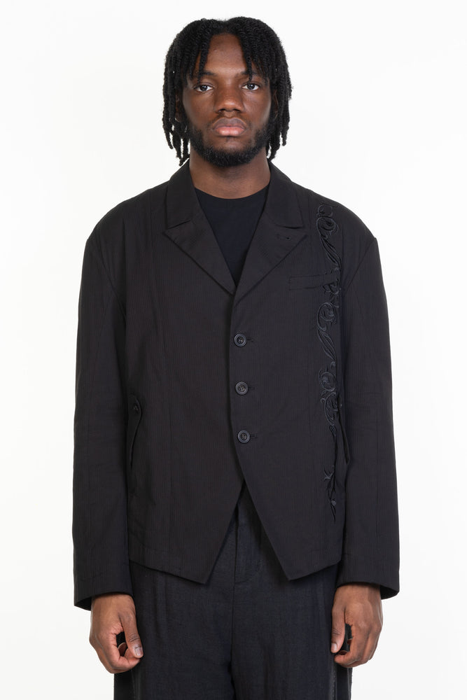 Founded in 2017 by Ken Rao, the Taiwanese label Professor. E is known for its enigmatic aesthetic outlook and mysterious dark aura incarnated by masked figures in its collections. Professor. E's creative blending of different fabrics combined with deconstructed patchwork act as the basis for its contemporary, yet timeless designs. Professor. E draws inspiration from his observations of life, witnessing the changes that arise from the clash of different cultures - old and new, East and West, antique and modern. From the heavy use of cotton and hemp, using different fabric stitching, patching, designs without edge trimming, deconstruction are all Professor. E's signature elements creating classic immortal designs that can be viewed historically. Within the collection, "Forgotten Materials" pieces are created from rare fabrics collected from all over the world and to create contemporary silhouettes in order to tell the stories behind them.