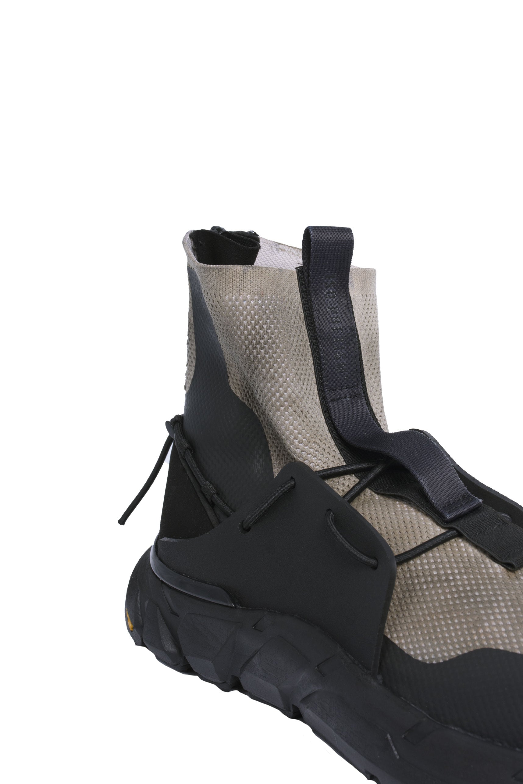 ISO.POETISM BY TOBIAS BIRK NIELSEN’s technical edge has been channeled into a footwear offering for the first time in the brand’s existence, launching as part of its Spring/Summer 2021 rollout. A tall sneaker/boot hybrid, the “PALAVY” is an Italian-made silhouette ideal for all-season wear, designed for everything the season can throw the wearer’s way. Part of the SS21 “INSTINCTS” collection. Hand-dyed by the same artisans that piece it together. Given the nature of the hand-dying process, each distinct makeup is unique.