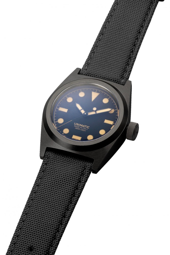 Unimatic was born as a continuous watchmaking research lab to offer watches able to combine good design, iconic elements and the latest technical solutions blending a perfect balance between quality and price. Unimatic makes limited edition runs of artfully minimal, but not minimalist watches. Unimatic design attitude blends the passion for vintage time pieces and contemporary watches providing the best aspects of both worlds. Unimatic watches production is made in Italy in collaboration with the leading suppliers available to ensure the best quality.