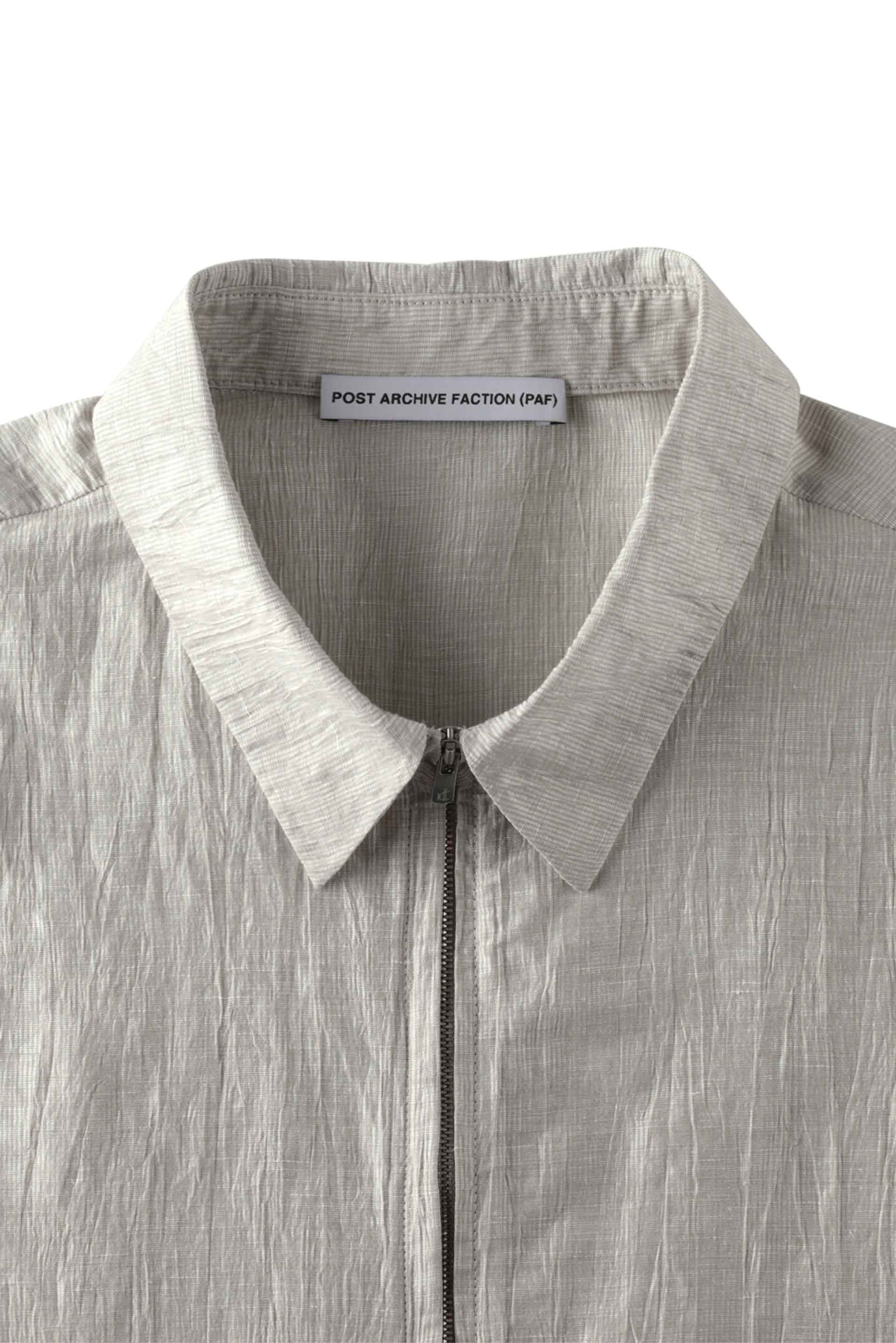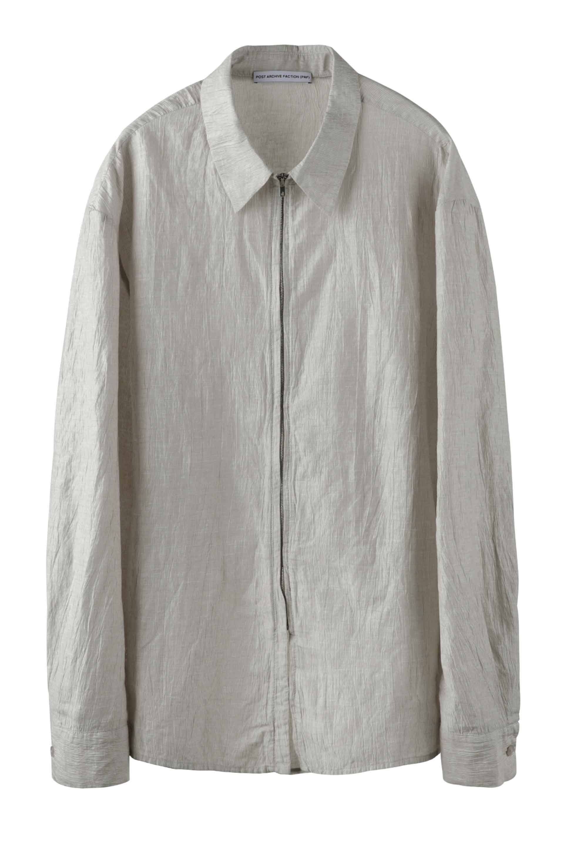 POST ARCHIVE FACTION (PAF) Linen zip-up shirt. Natural silhouette and lightweight comfort. Oversized fit. Soft touch with lightweight fabric. Wrinkle made with TATEJIWA processing. Fabric from JapanMachine washable and easy to maintain the product. YKK EXCELLA® zipper. Logo engraved buttons.