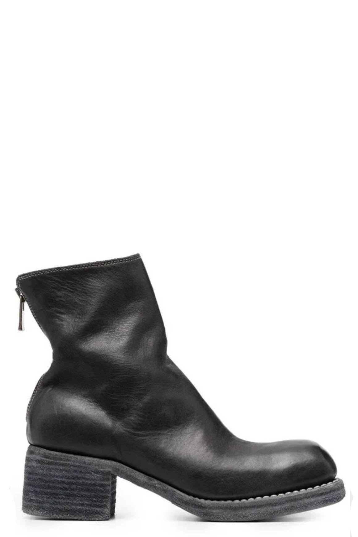 Guidi 9086 back zip boots in black soft horse full grain leather. Square toe. Stacked heel. Heel height 5cm. Signature Guidi branded hardware. 100% leather upper, lining and sole.