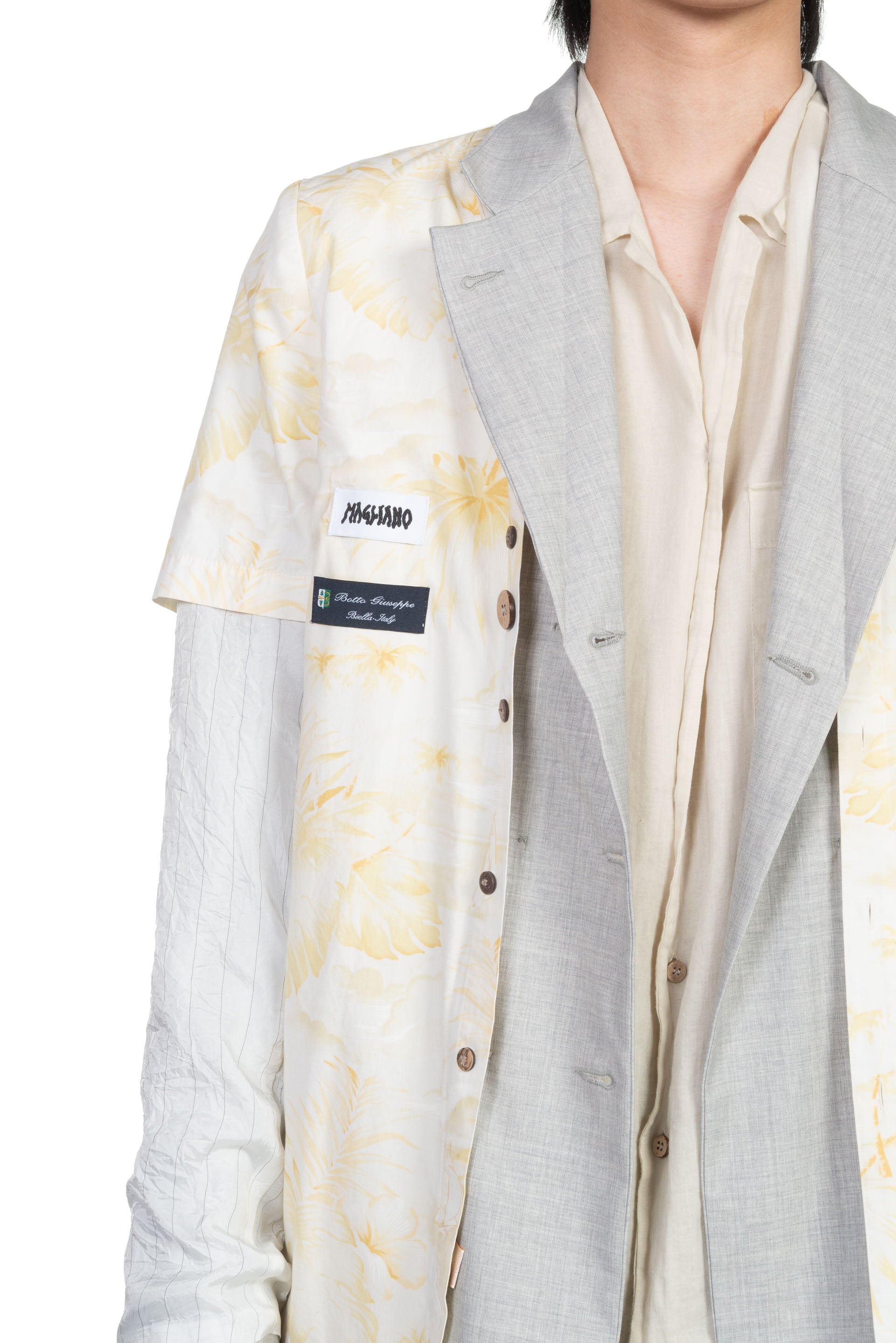 Double breasted jacket. Button closure at front. Side Pockets. Inside pockets. Magliano twist. Reversibile featuring an inner Hawaiian print shirt. Hawaiian shirts are hand-selected by the Magliano team and have been re-worked to create this product. Possible variations and imperfections between each item make it unique to the wearer.