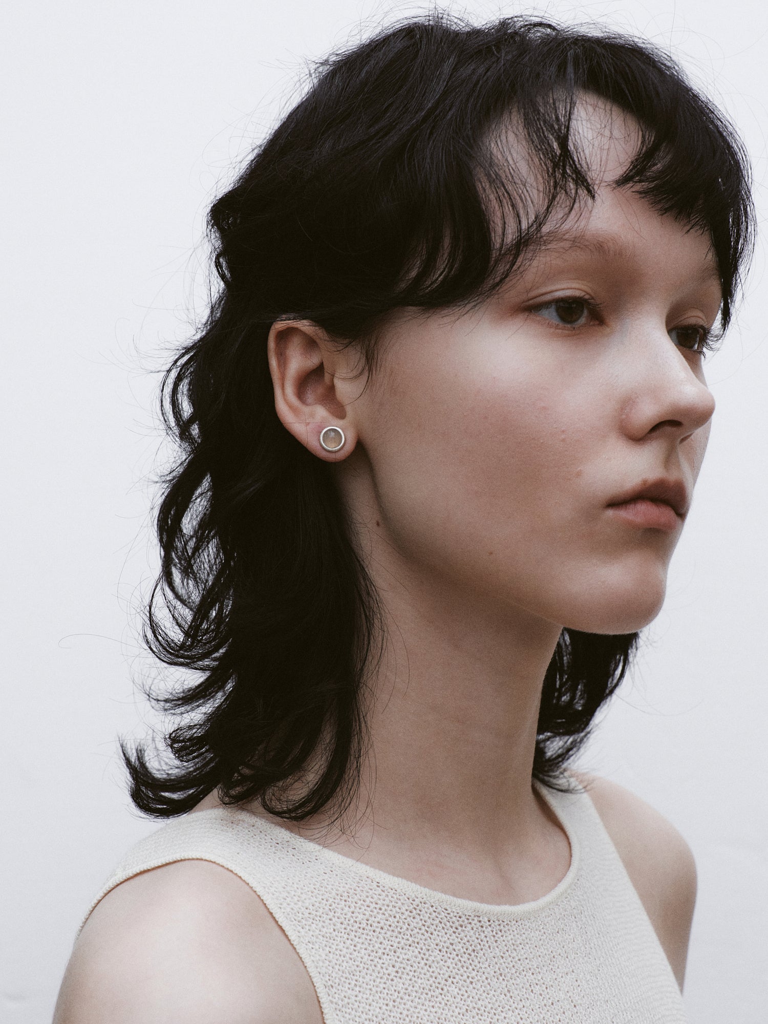 OLIO E ACETO is raw and authentic. It is about the companionship between people, and objects like the matte white surface becoming a blank canvas to be filled by the wearer as seen with the Agate Ear Studs.