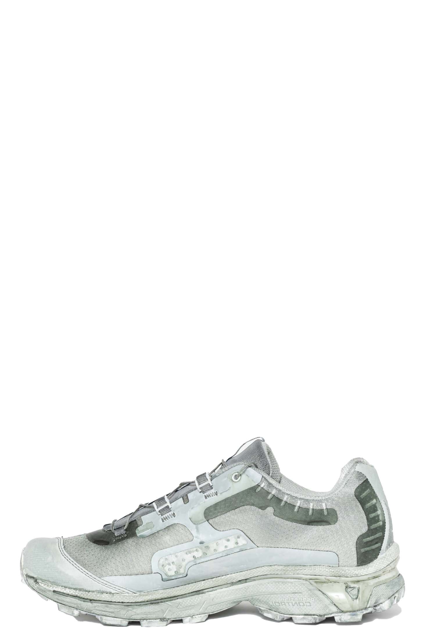 Object Dye Low-top bonded jersey and mesh trainers in Alga dye. Smudging and bonded trim throughout. Snake-embossed faux-leather cap toe. Logo bonded at vamp. Quicklace™ closure. Logo patch at padded tongue. Padded collar. Logo printed at heel counter. Mesh lining. Treaded Contagrip® rubber sole. Part of the 11 by Boris Bidjan Saberi x Salomon collaboration.