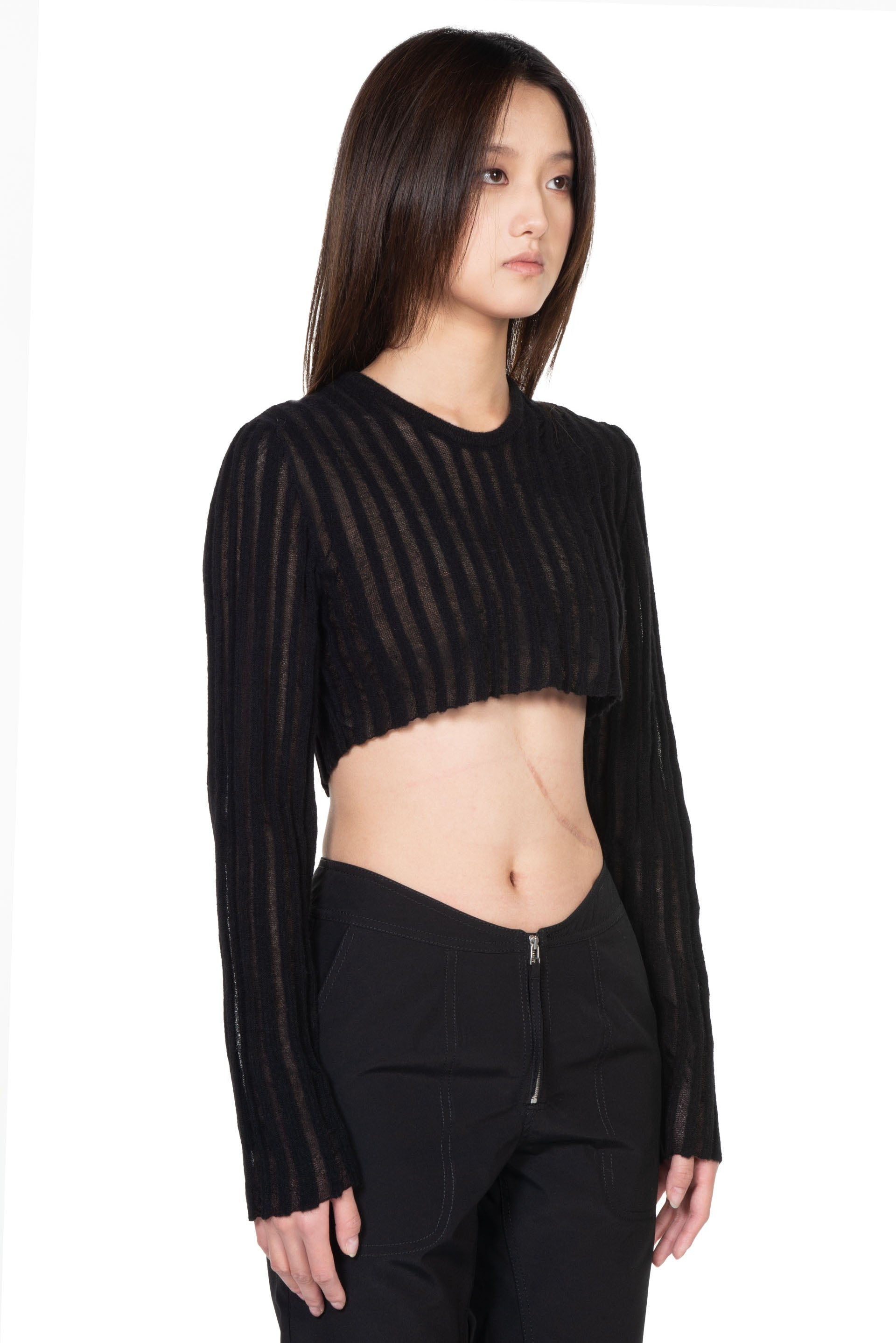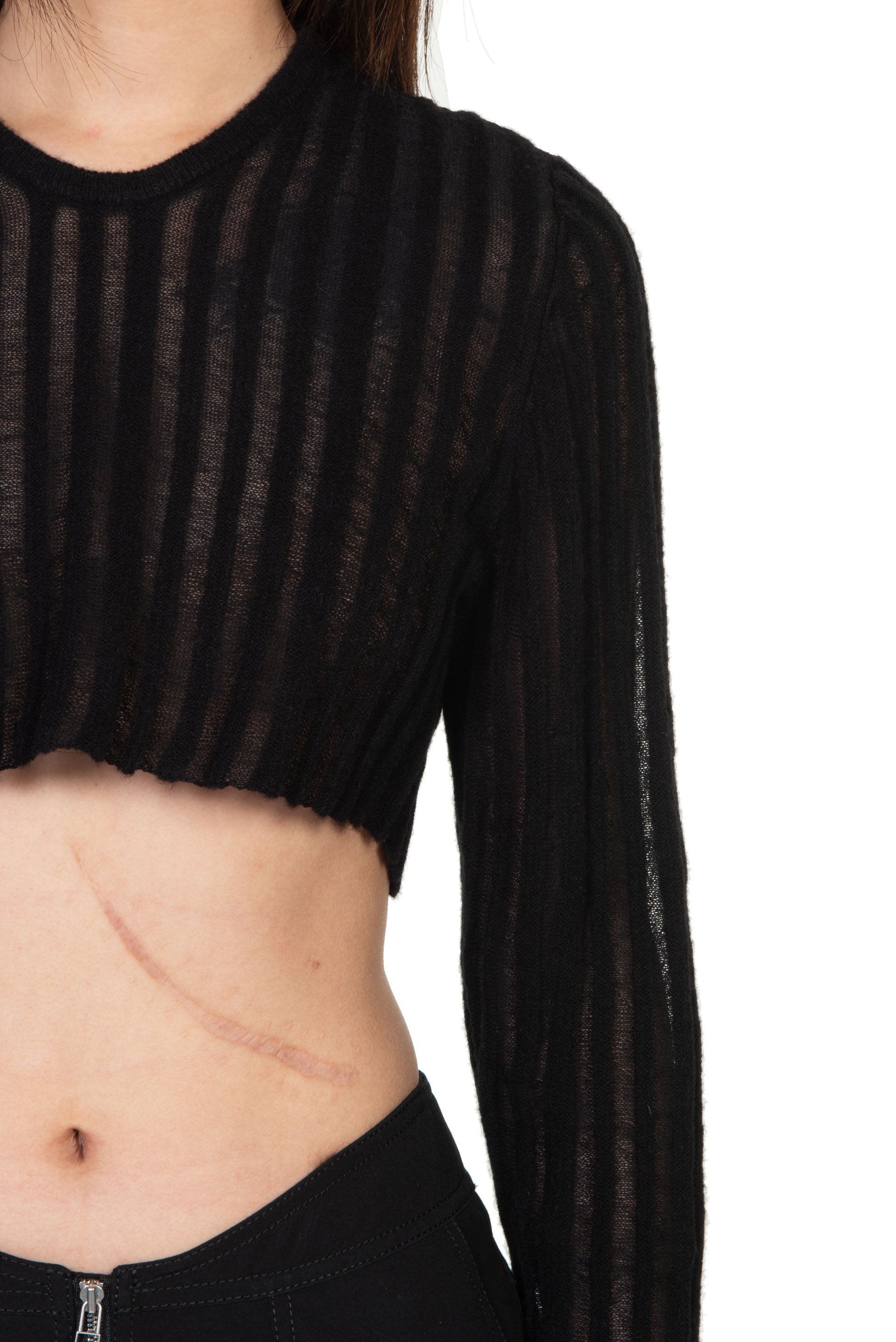 Long sleeves. Cropped. Stripe details throughout. Soft knitted fabric.