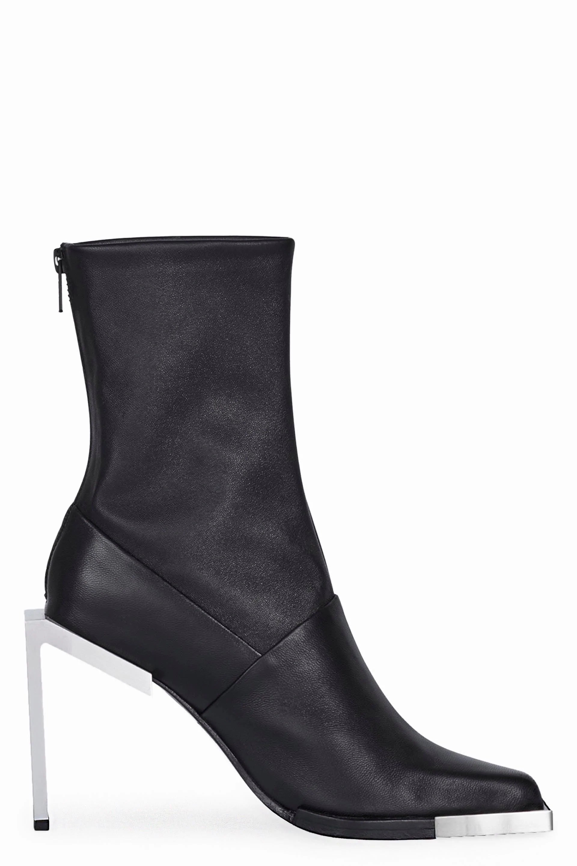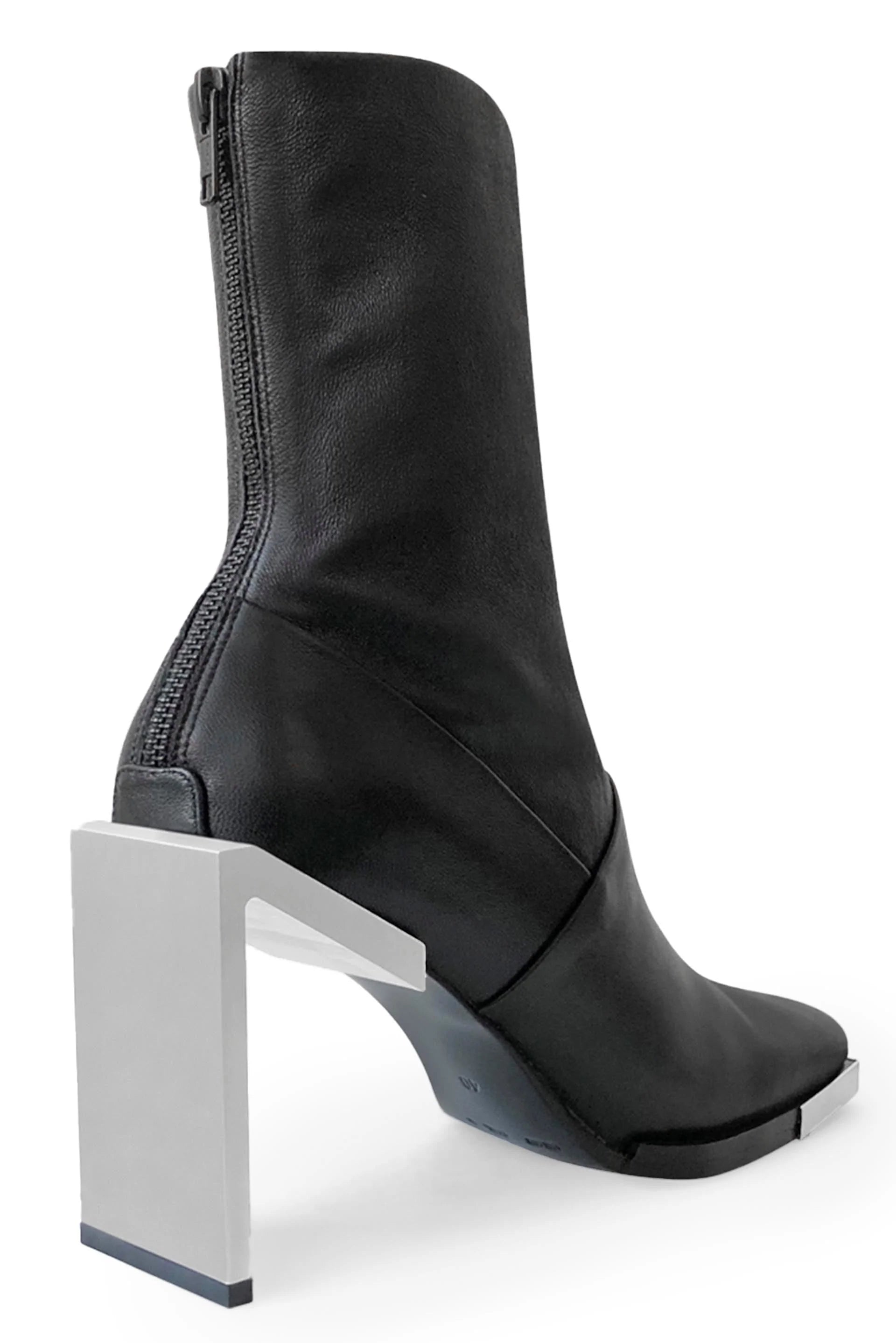 Calf leather ankle-high boots. Set on a stacked, squared-off shaped sole. Brushed stainless steel heel and steel toe cap. Zipper fastening. Insole with embossed HELIOT EMIL ™ logo.