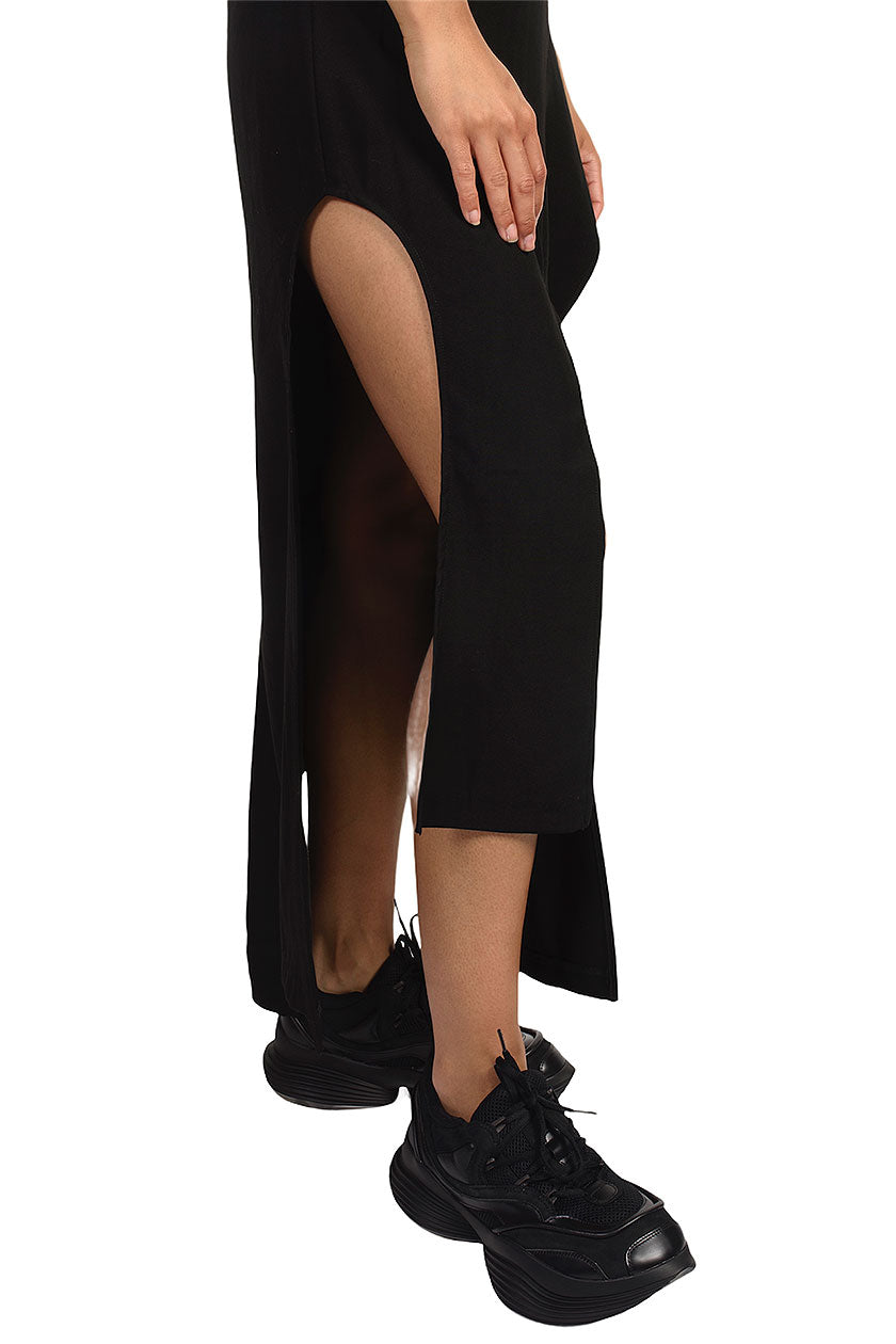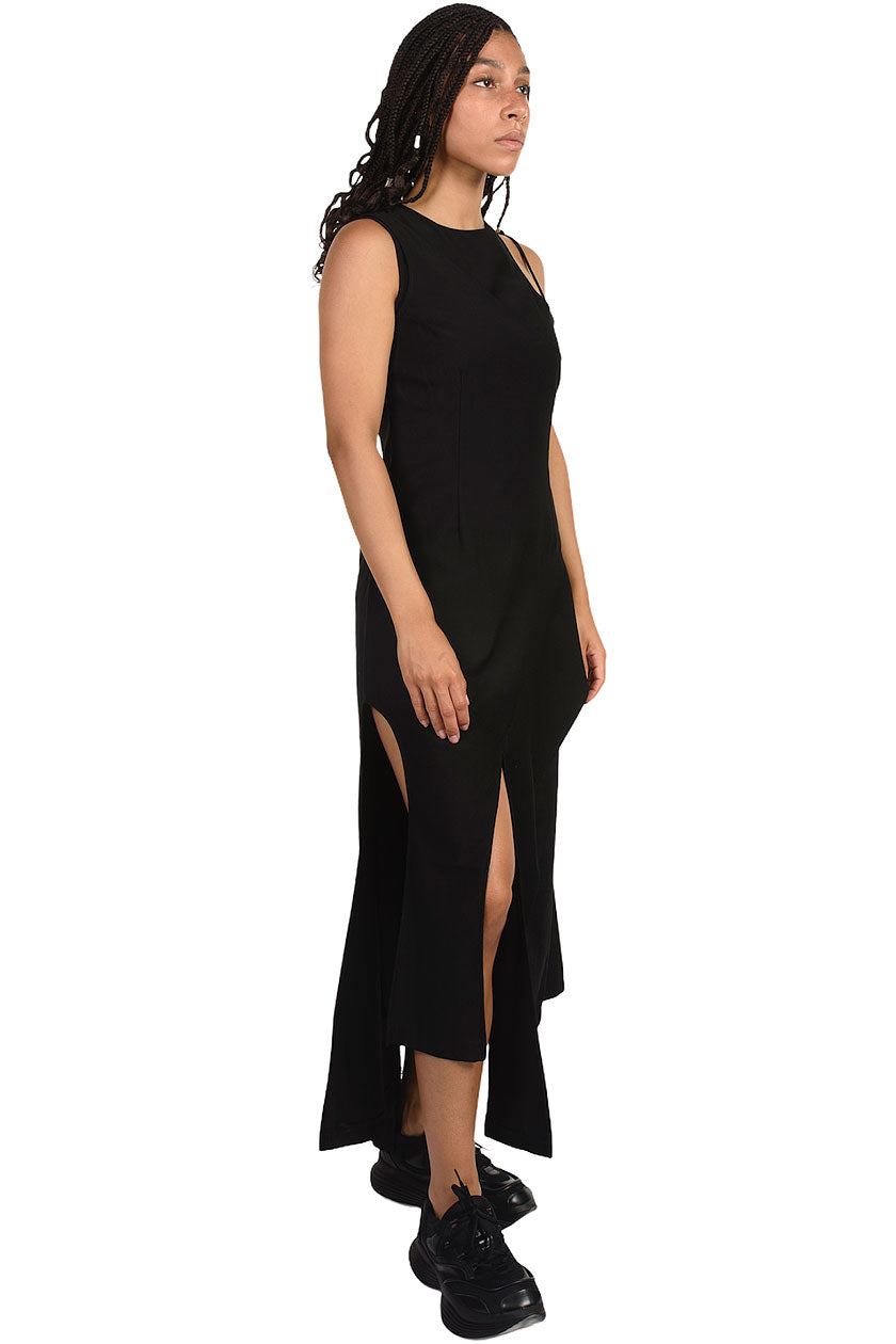 C2H4 concept ranges from hypothetical space scientists producing sport and streetwear-inspired designs creating an intergalactic underground culture. Using her studio as a laboratory, Chen’s meticulously elevates wardrobe cornerstones as seen with the Arc Layered Asymmetric Strap Midi Dress.
