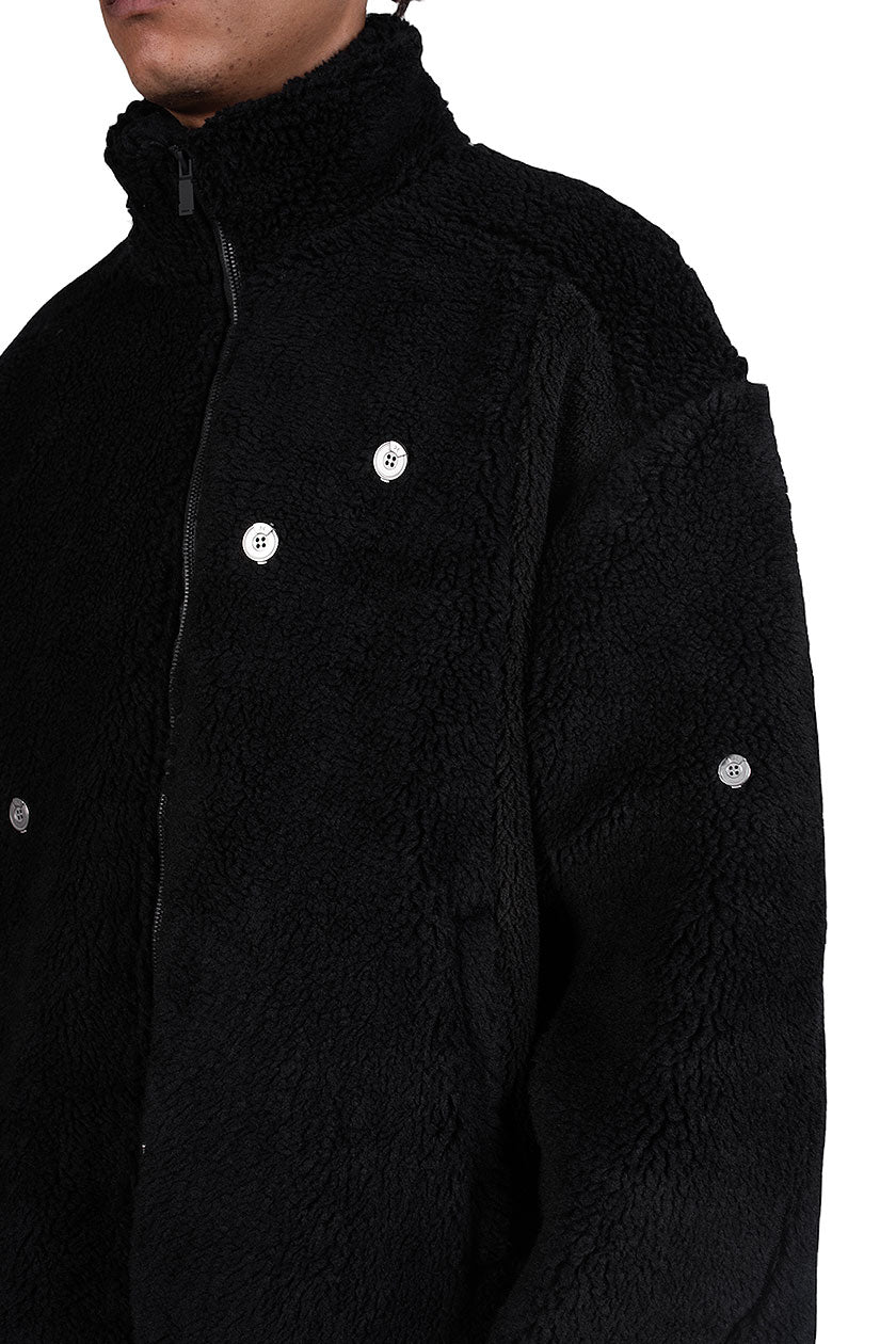 Padded Oversize Jacket. Two Type Panelled Fleece. Two Way Zipper Closure At Front. Zippered Pockets At Waist. Hidden Elastic Drawstring At Hem. Logo Engraved Trims Throughout. Elasticised Cuffs