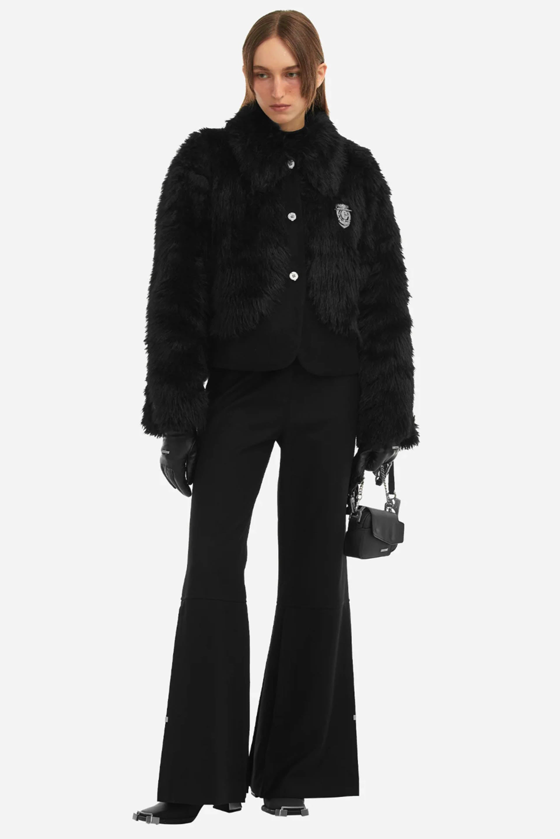 C2H4 concept ranges from hypothetical space scientists producing sport and streetwear-inspired designs creating an intergalactic underground culture. Using her studio as a laboratory, Chen’s meticulously elevates wardrobe cornerstones as seen with the Arch Panelled Fur Jacket.