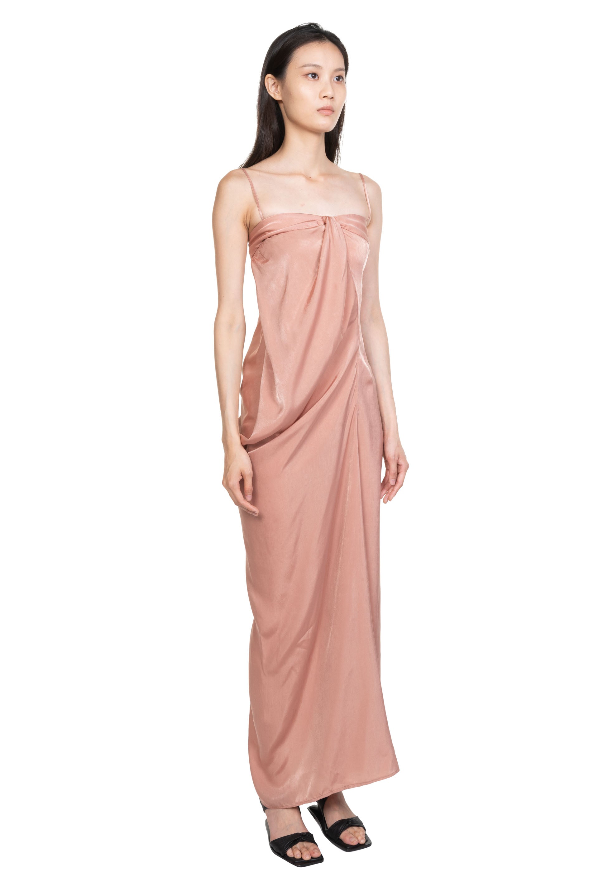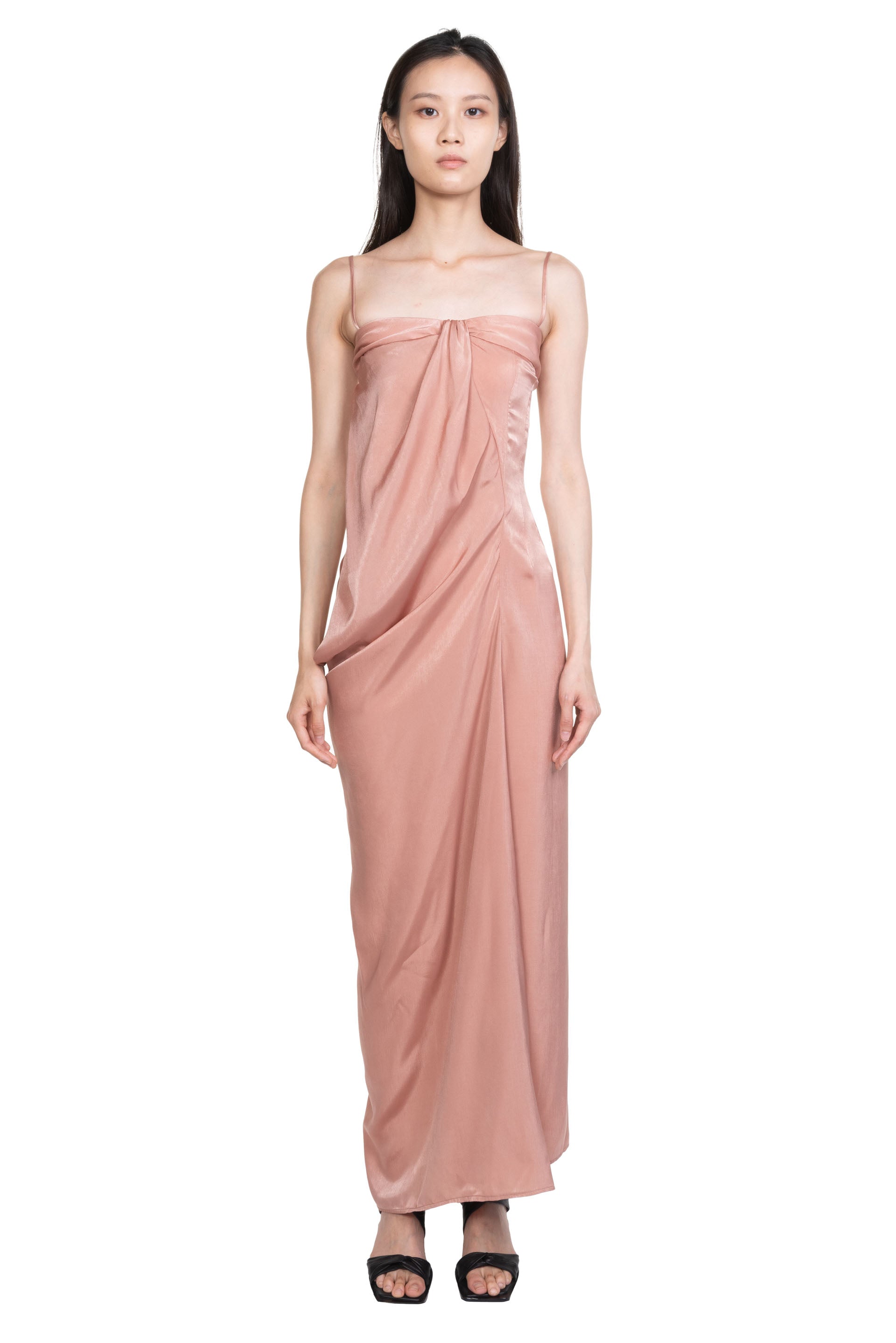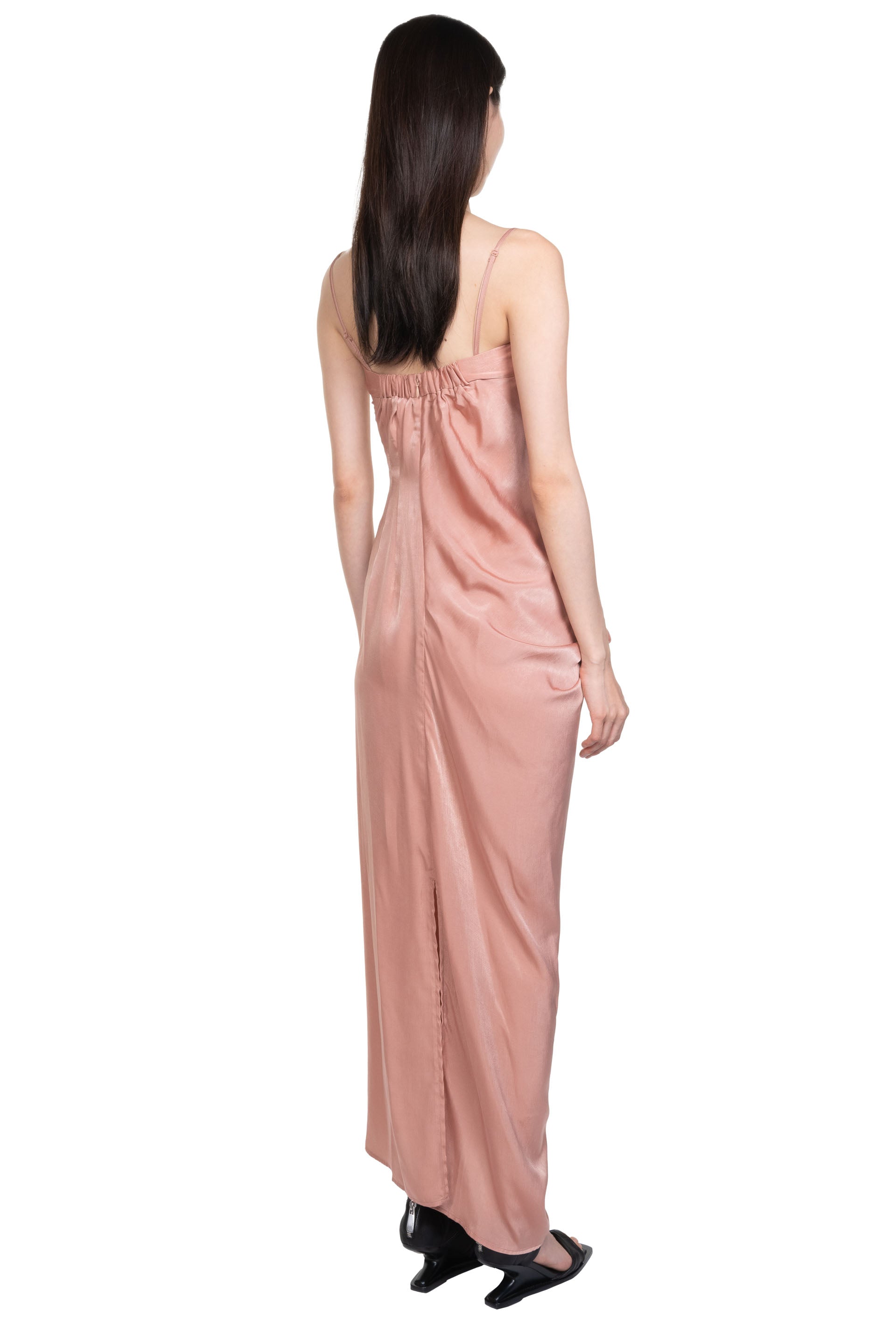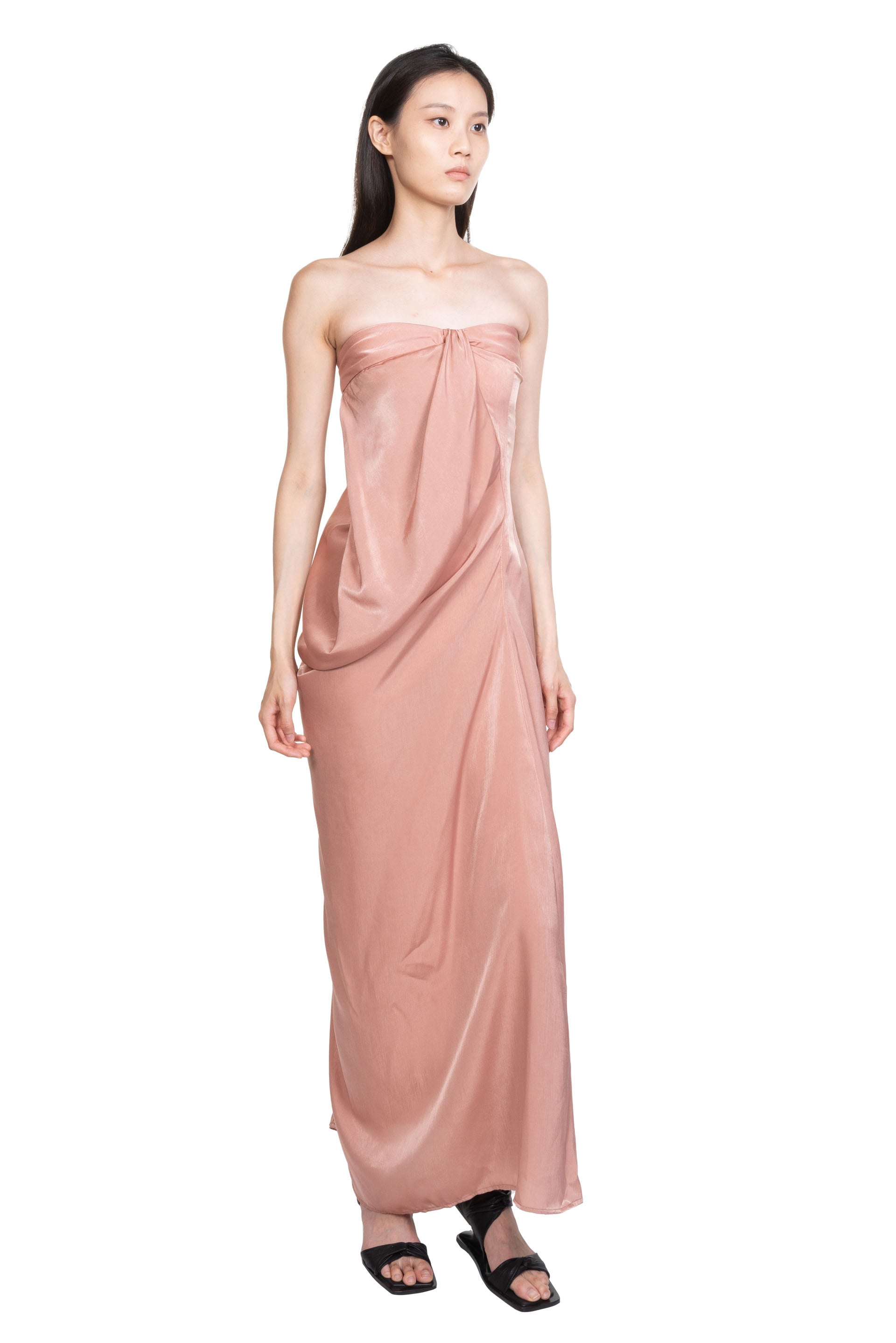 OUDE WAAG strikes a balance between Asian aesthetics and Western cutting. It is at the heart of designer’s philosophy: celebrating the power of women, yet simultaneously critiquing the ongoing objectification and idealisation of the body as you can see in the Oude Waag "Burn" collection with the Asymmetric Draped Dress Shell Pink.