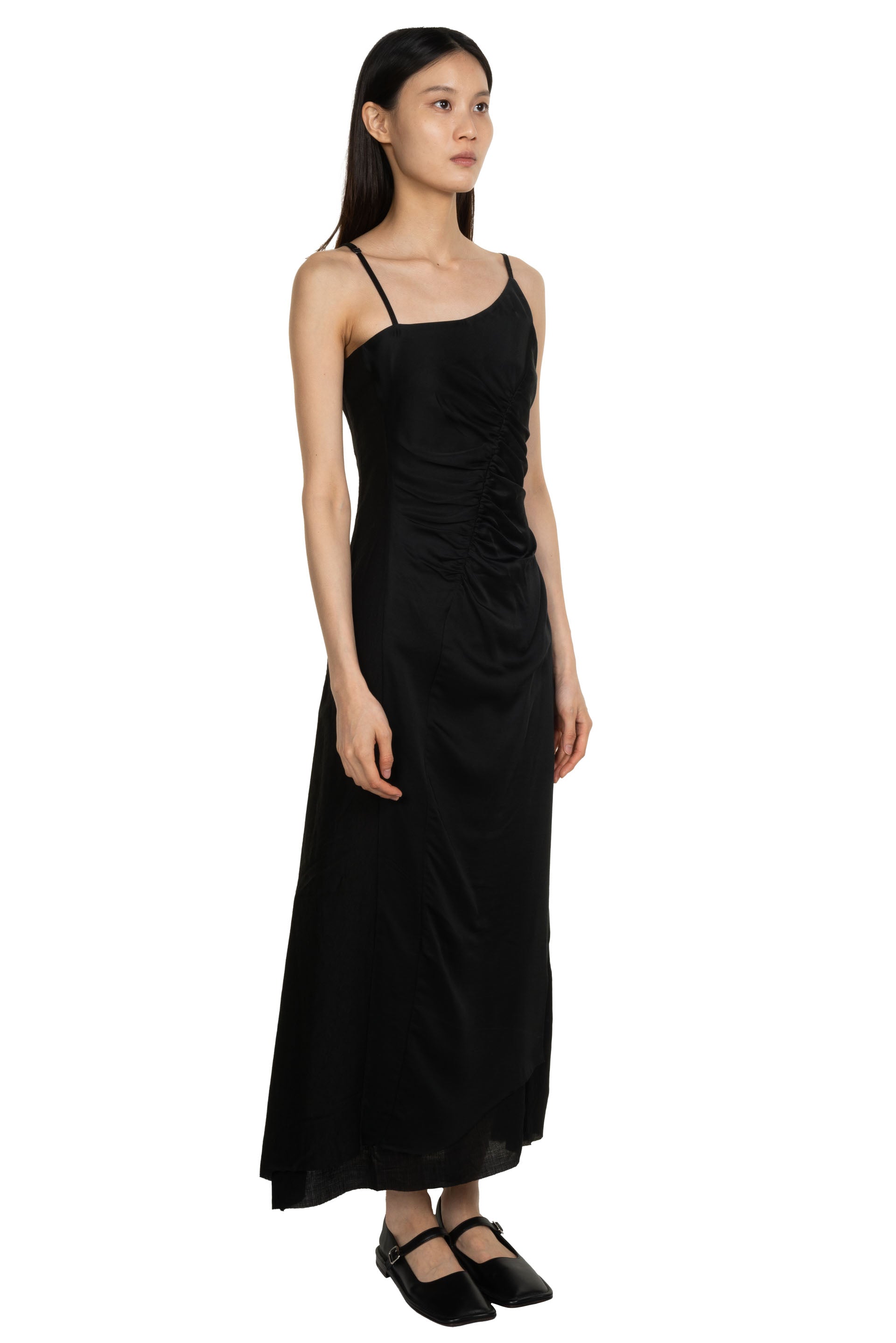 Professor e Asymmetrical Dress Black. Sleeveless. Spaghetti adjustable shoulder strap. Asymmetrical design throughout.