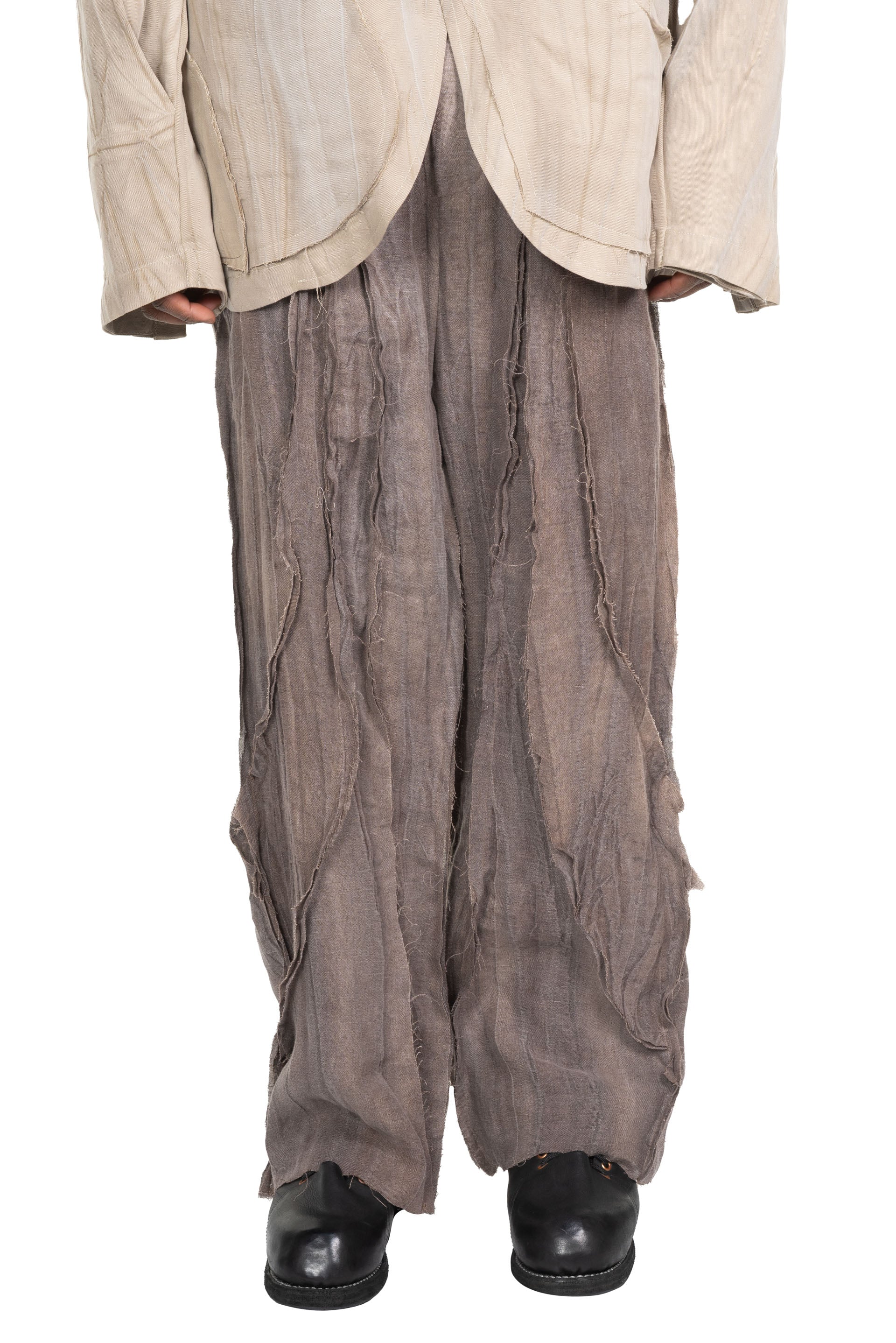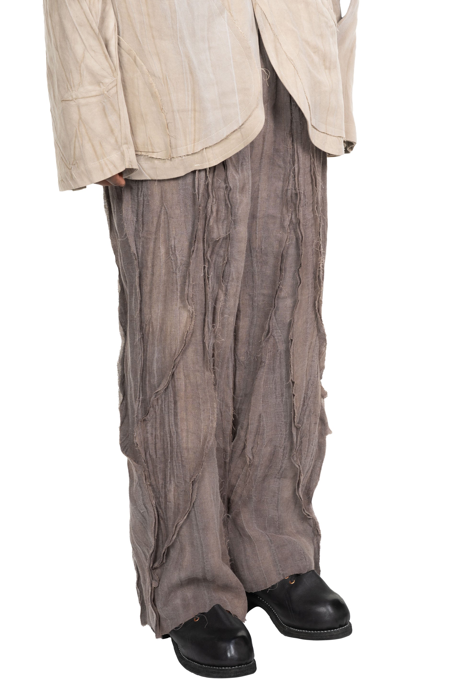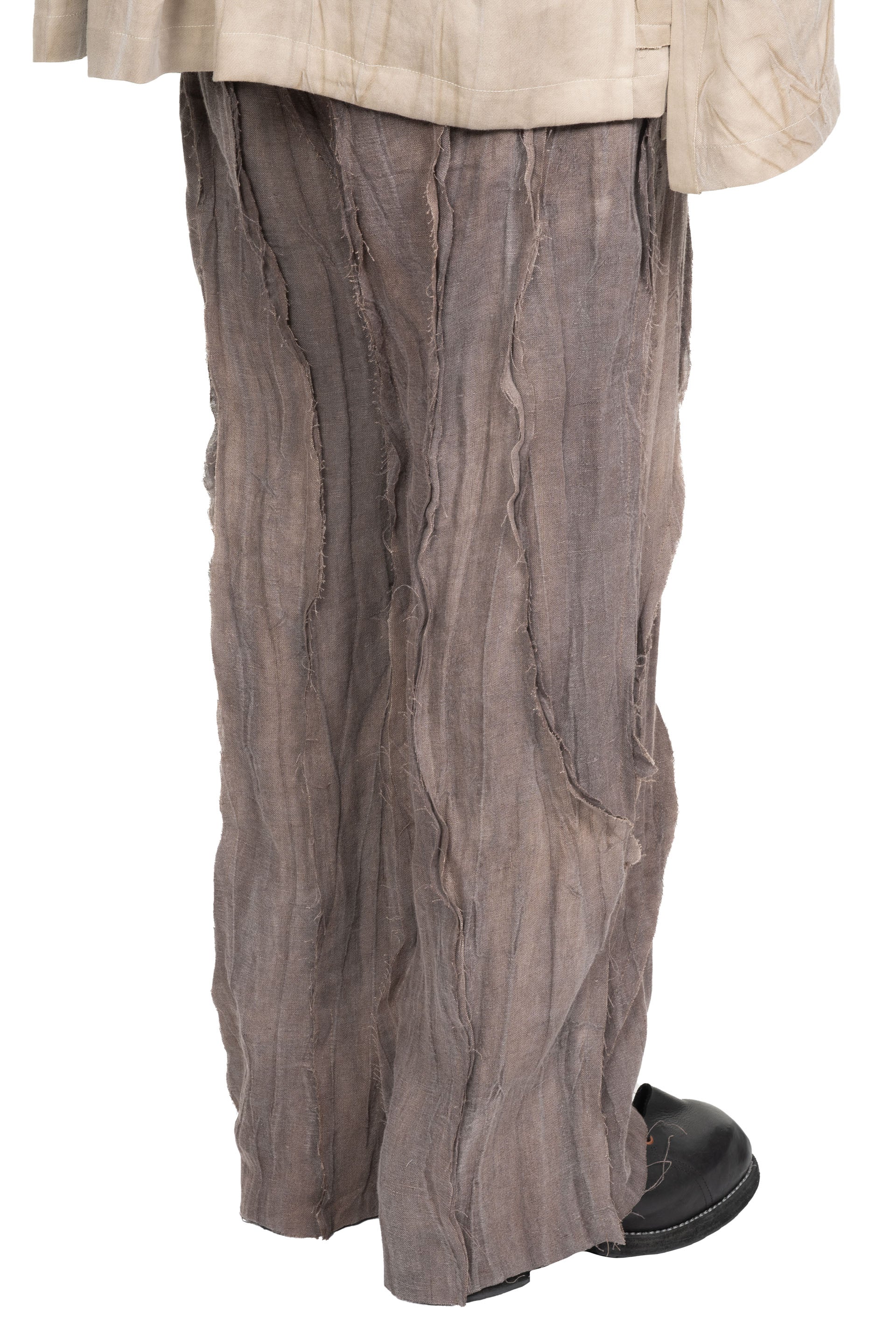 Aenrmous Aura Pants Brown. Button closure at waist. Two side pockets. Threads details throughout. Soft and light textural fabric.