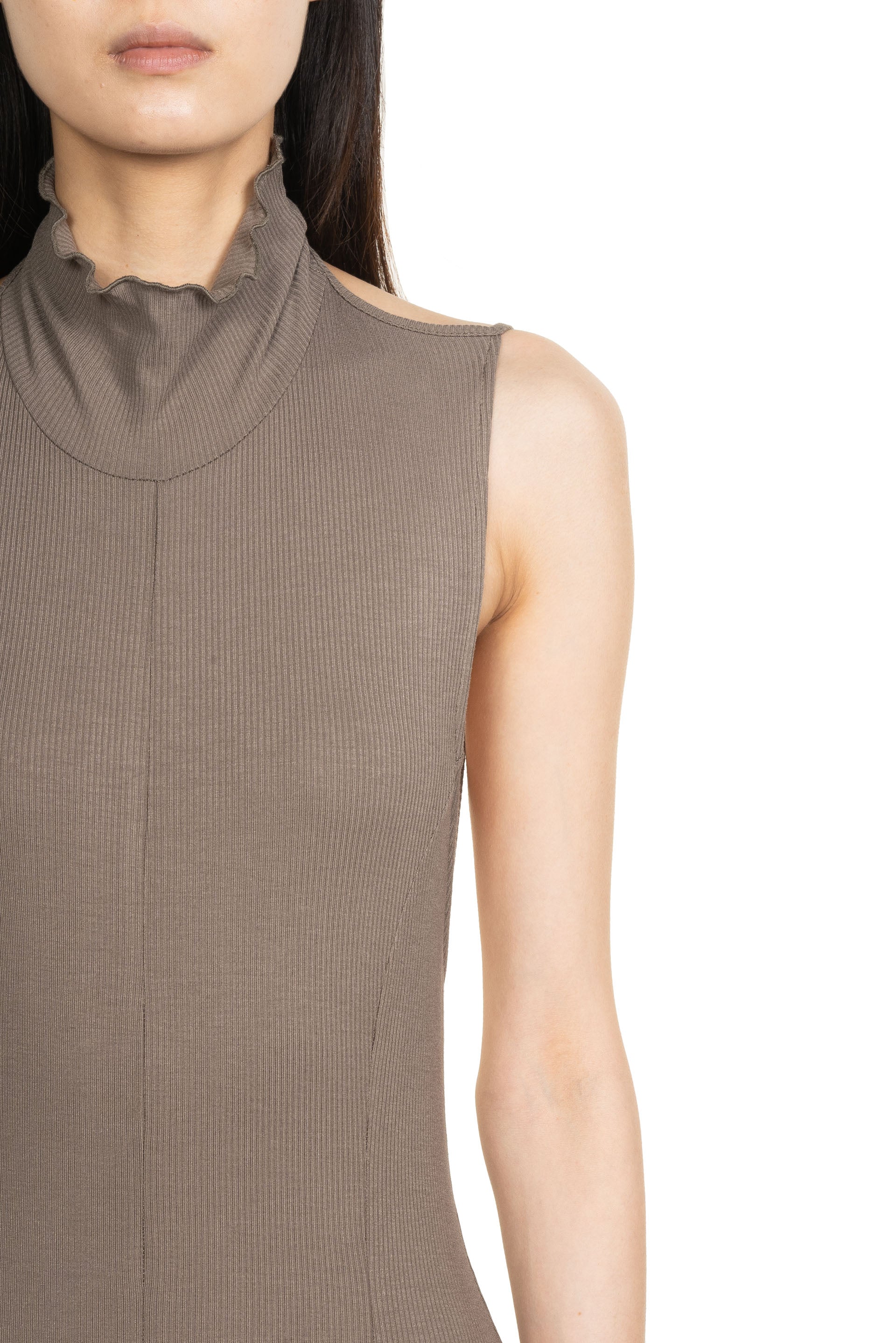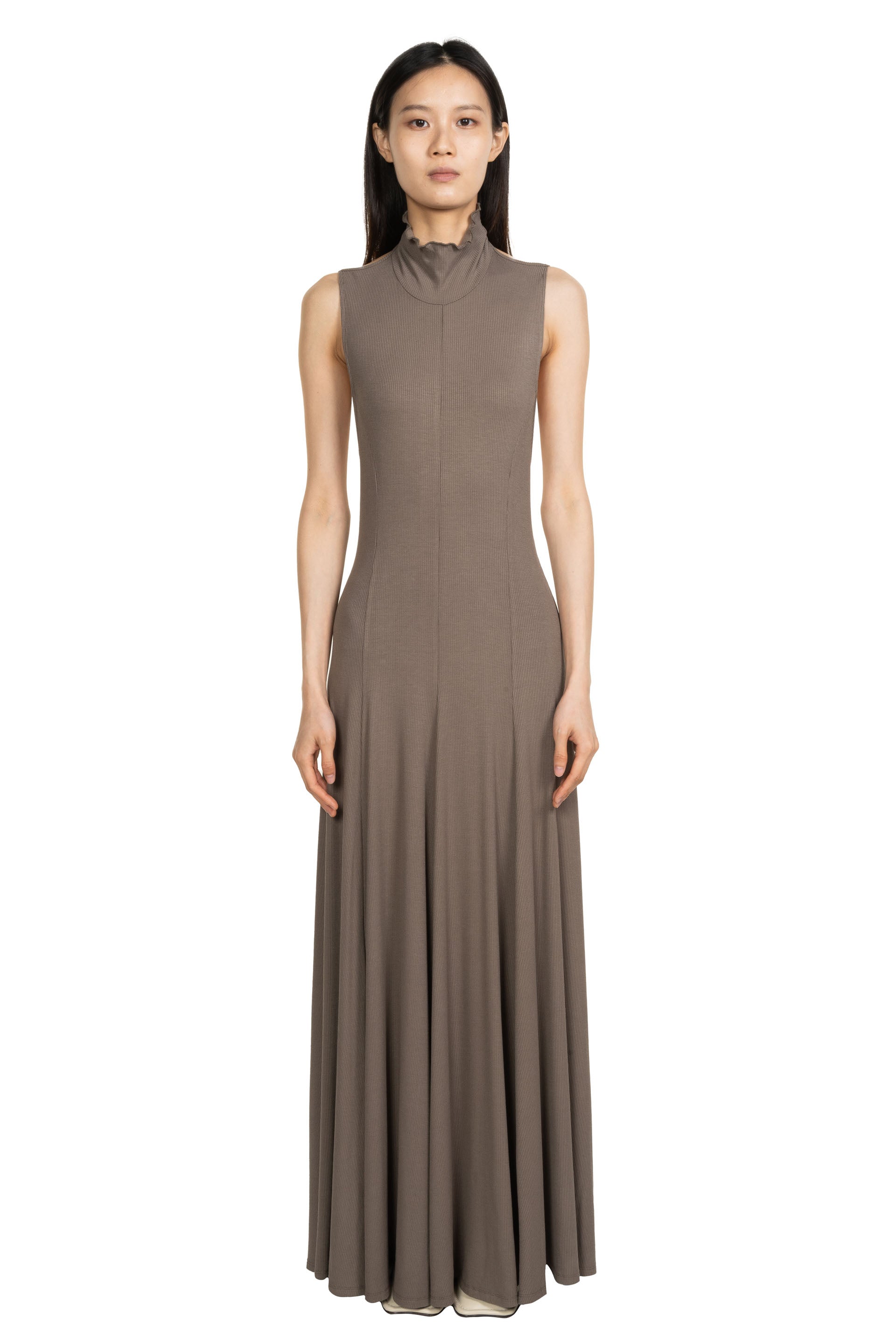 Peng Tai creates modern silhouette with traditional Chinese philosophy. Inspired by how Chinese herbal medicine regulates the body from the inside out, Peng Tai aims to research and develop a way to boil Chinese herbal medicine with fabrics, to create clothes that feel like a second skin as seen with the Backless Flora Maxi Dress Forest Grey.