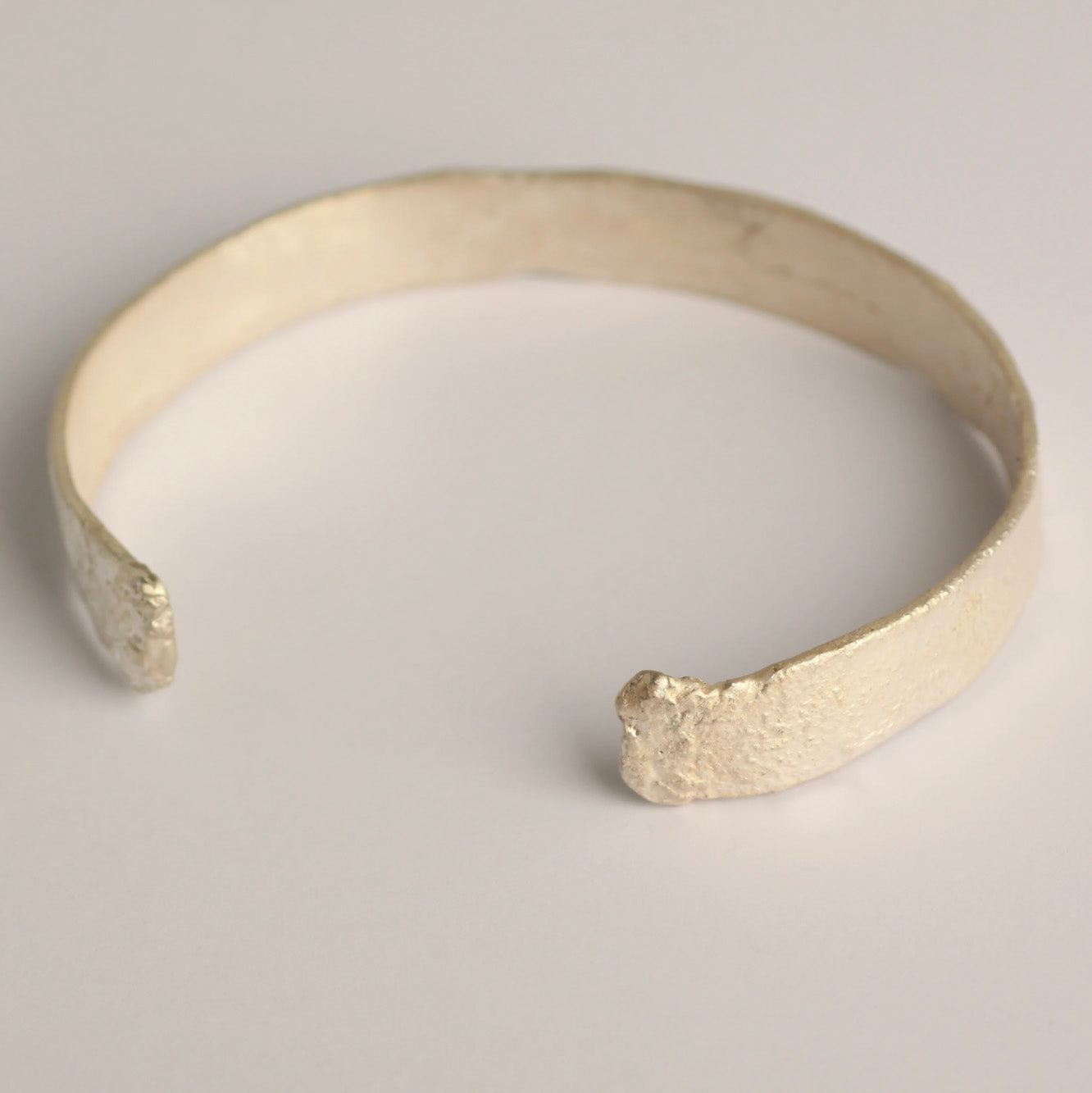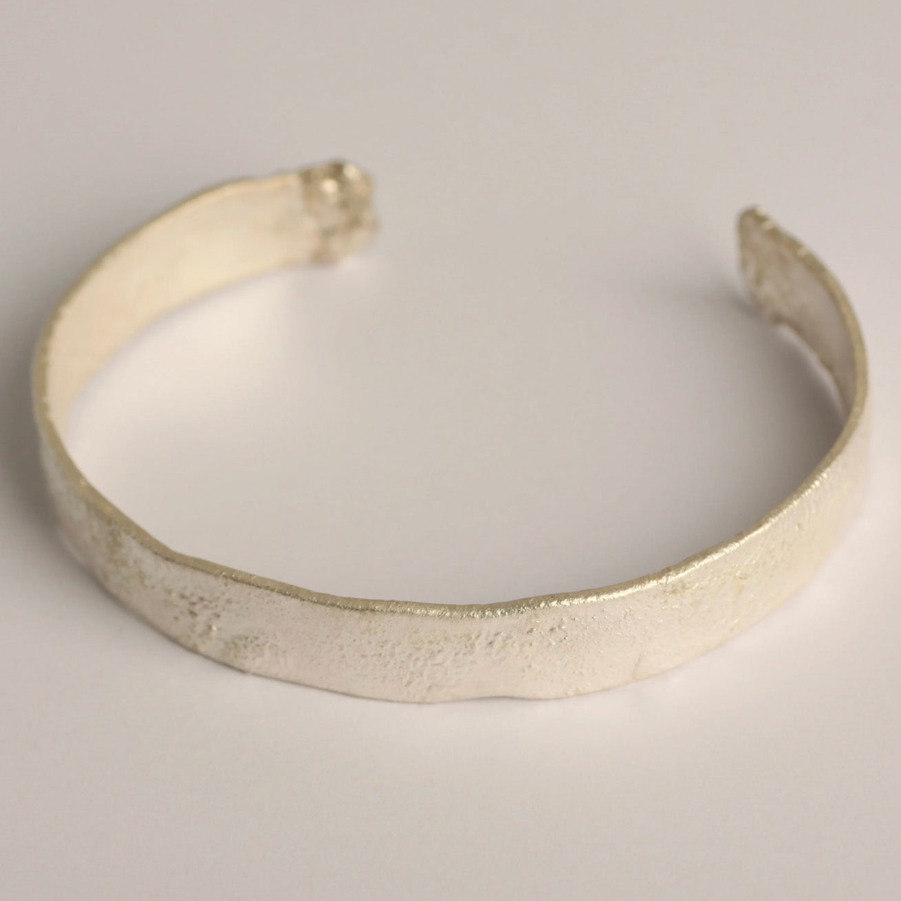 Handcrafted in Hyogo, Japan, the iolom Bark Bangle draws inspiration from the organic textures of nature. Formed using traditional metalworking techniques, its surface carries a mat white finish that highlights raw detail, subtle irregularity, and the quiet beauty of imperfection.