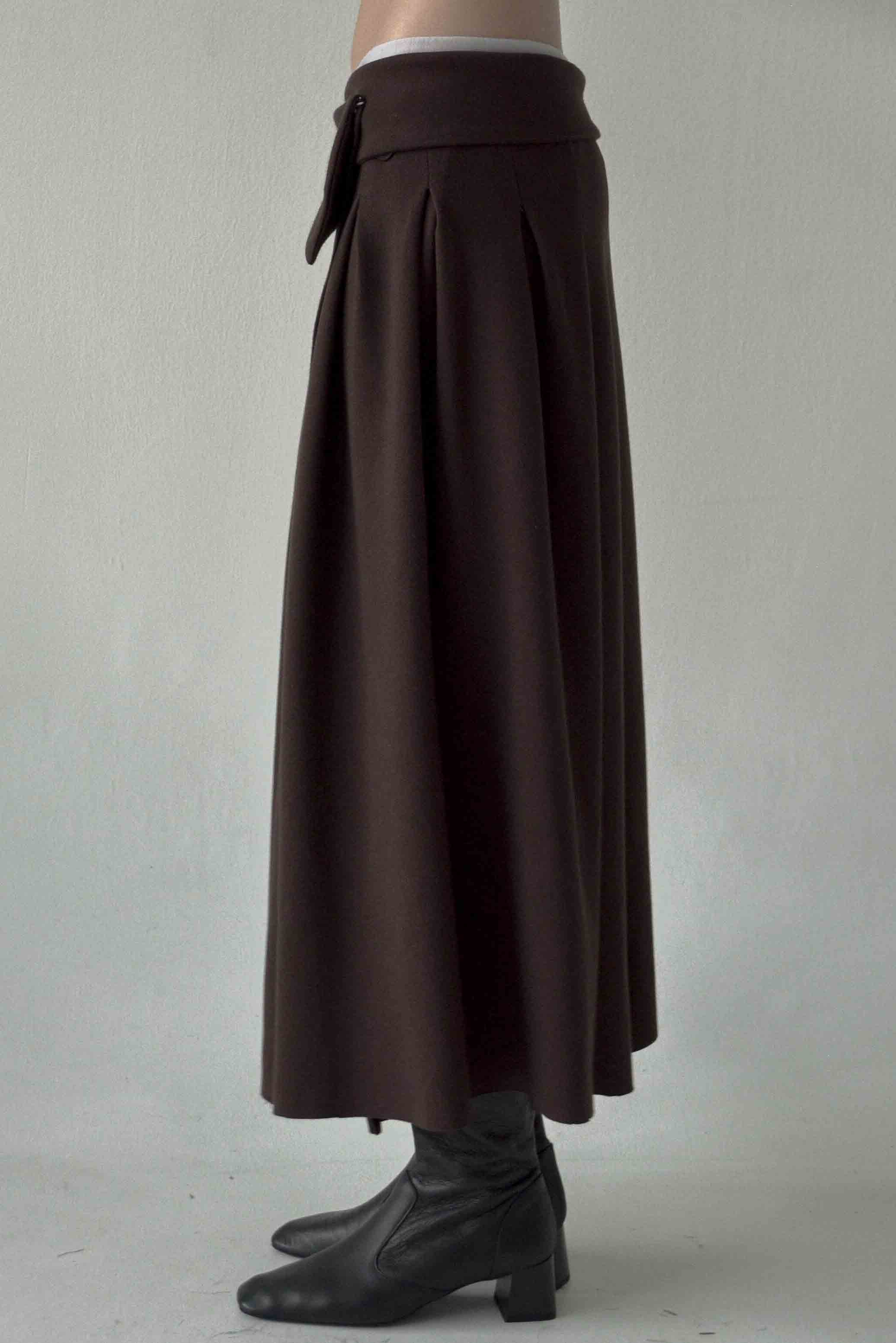 Barra Pleated Skirt in Brown Grey. Maxi-length skirt with pleated details on the skirt. Inner button as opening. Stretchable cotton fabric with soft feel. Pleated details. Length: 91cm for XS,S - 92cm for M,L.