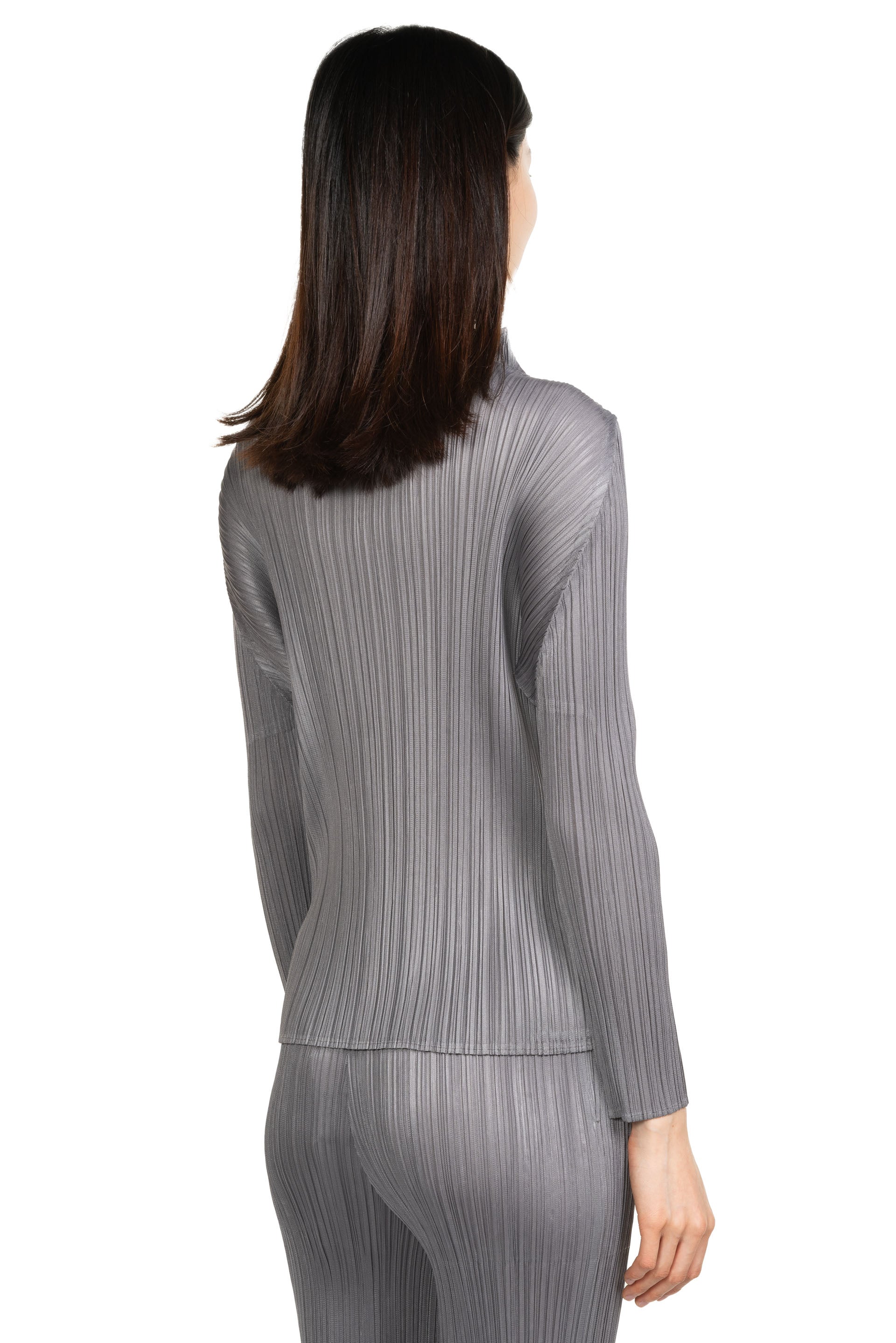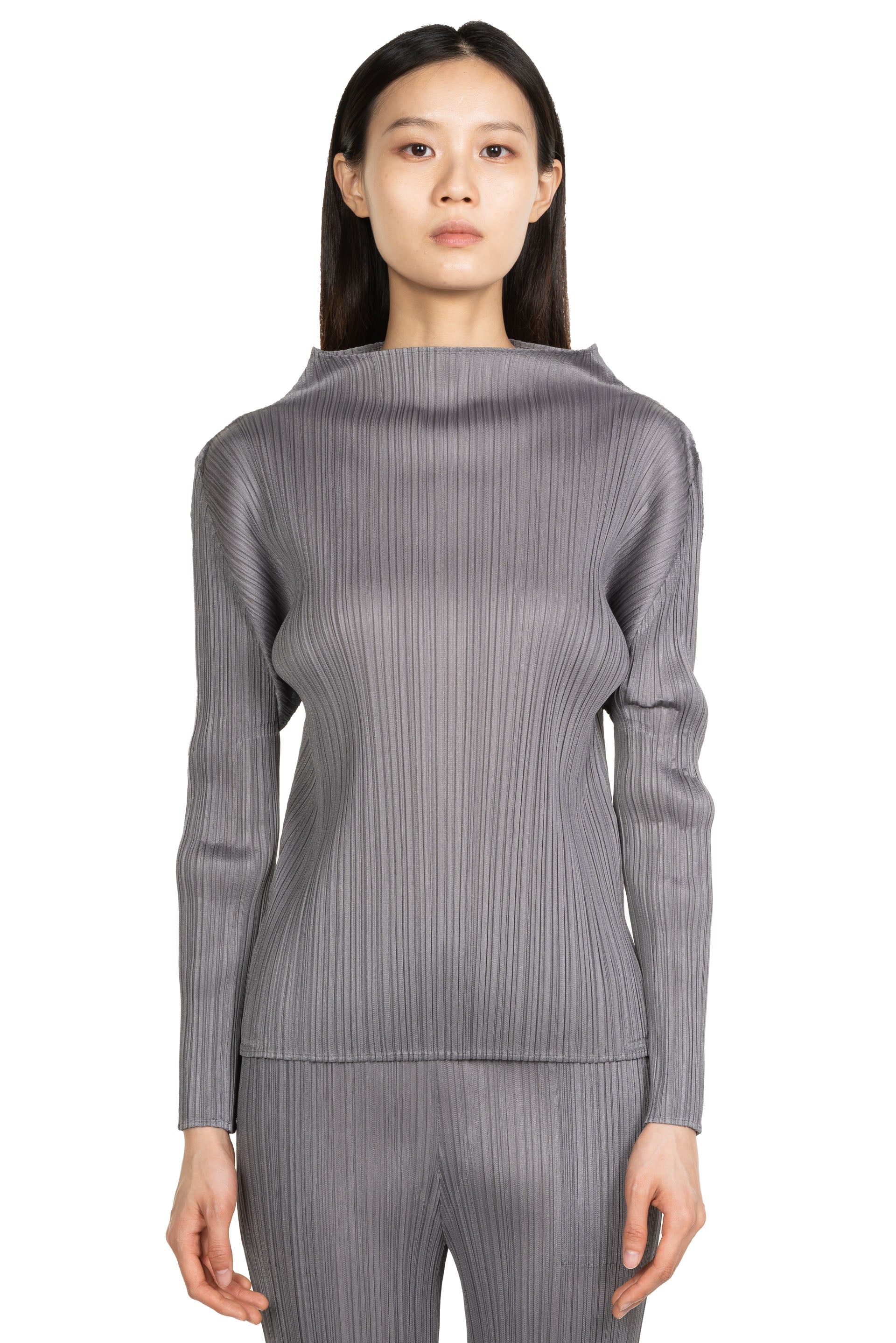 Pleats Please is crafted from a single thread, then creases are added after the clothes have been sewn into shape offering a combination of convenience, comfort and coolness. Pleats Please designs are simple with a strong silhouette as seen with the Basic Top Grey.