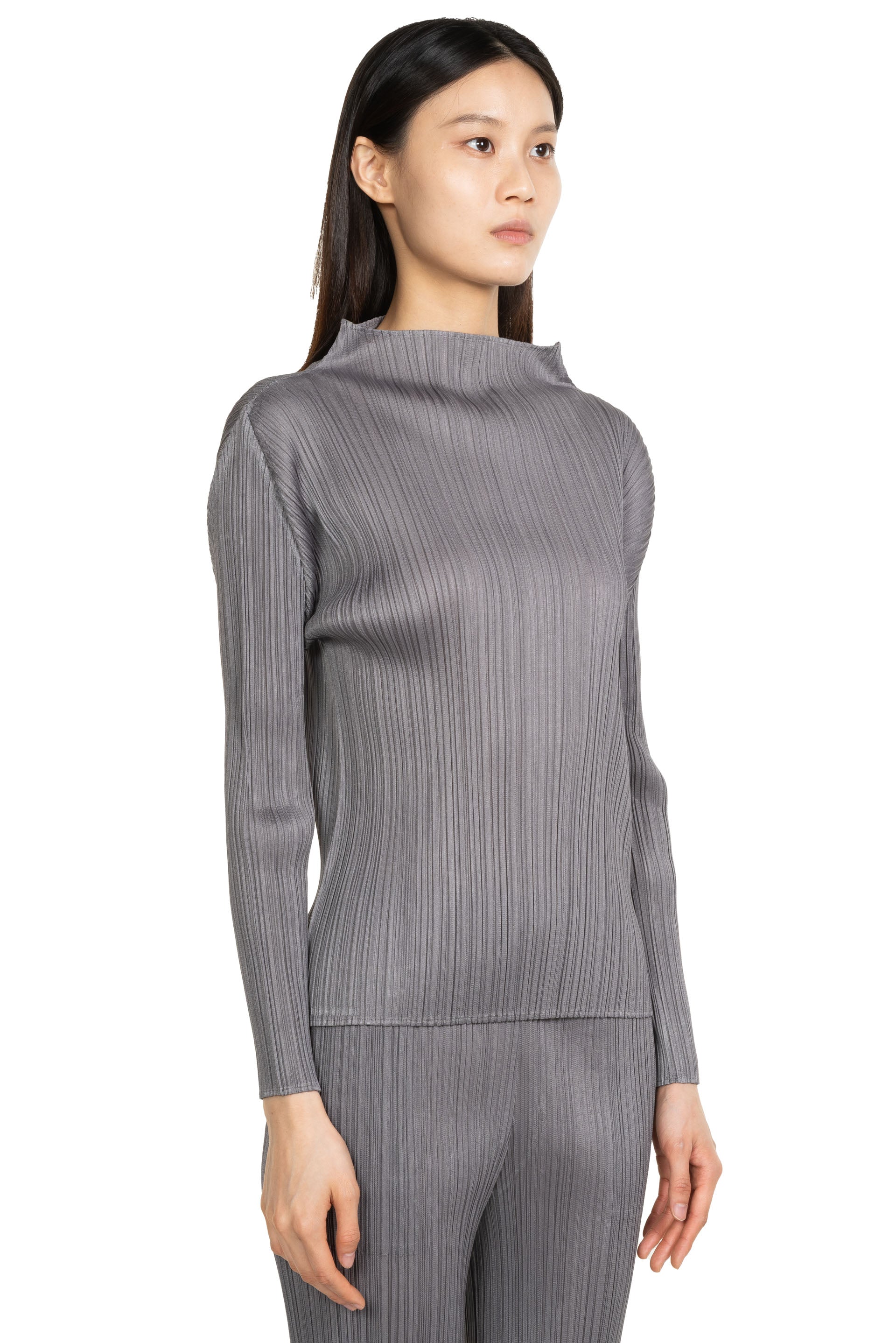 Pleats Please Grey Basics Top. Long sleeves. Mock neck. Pleated top.