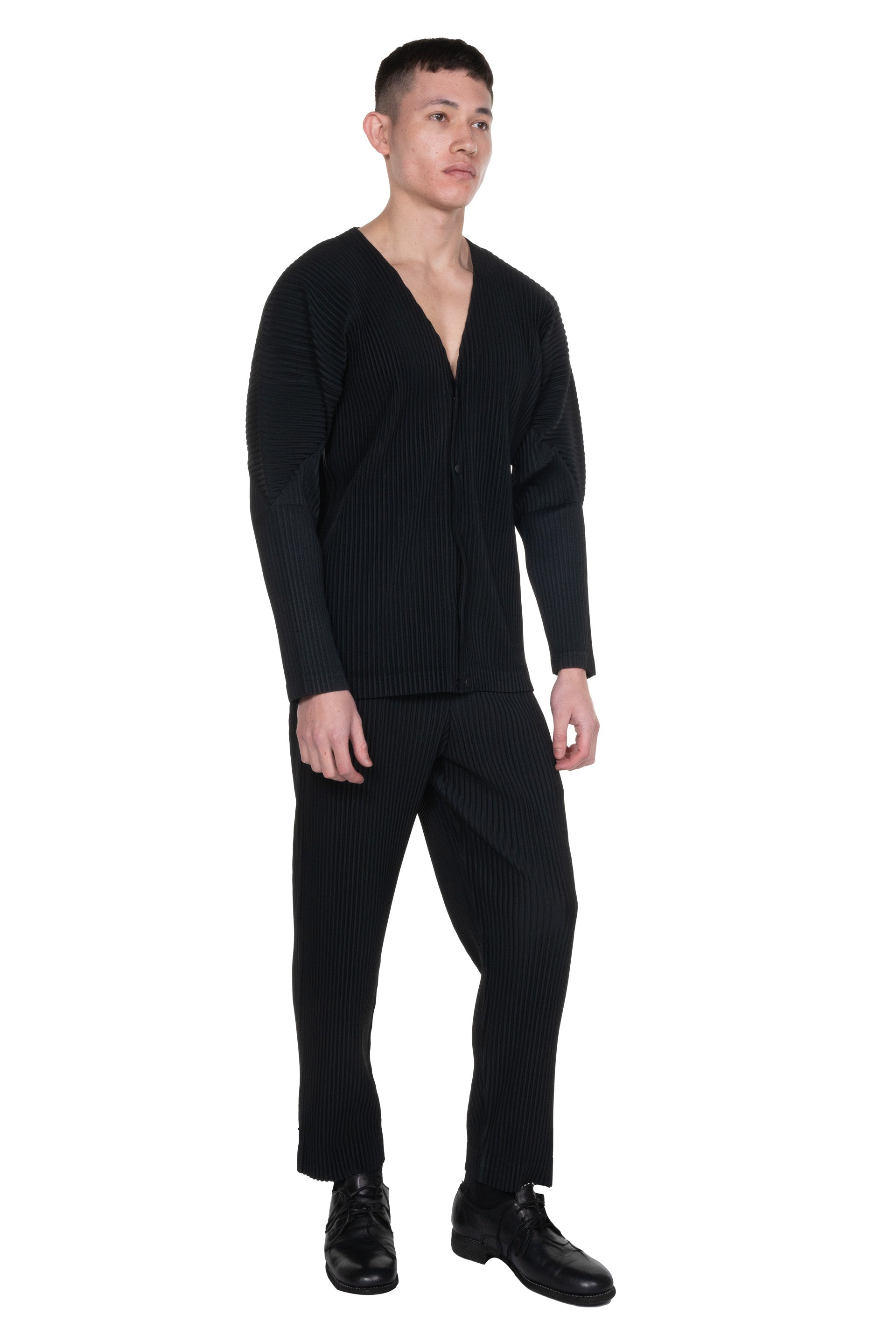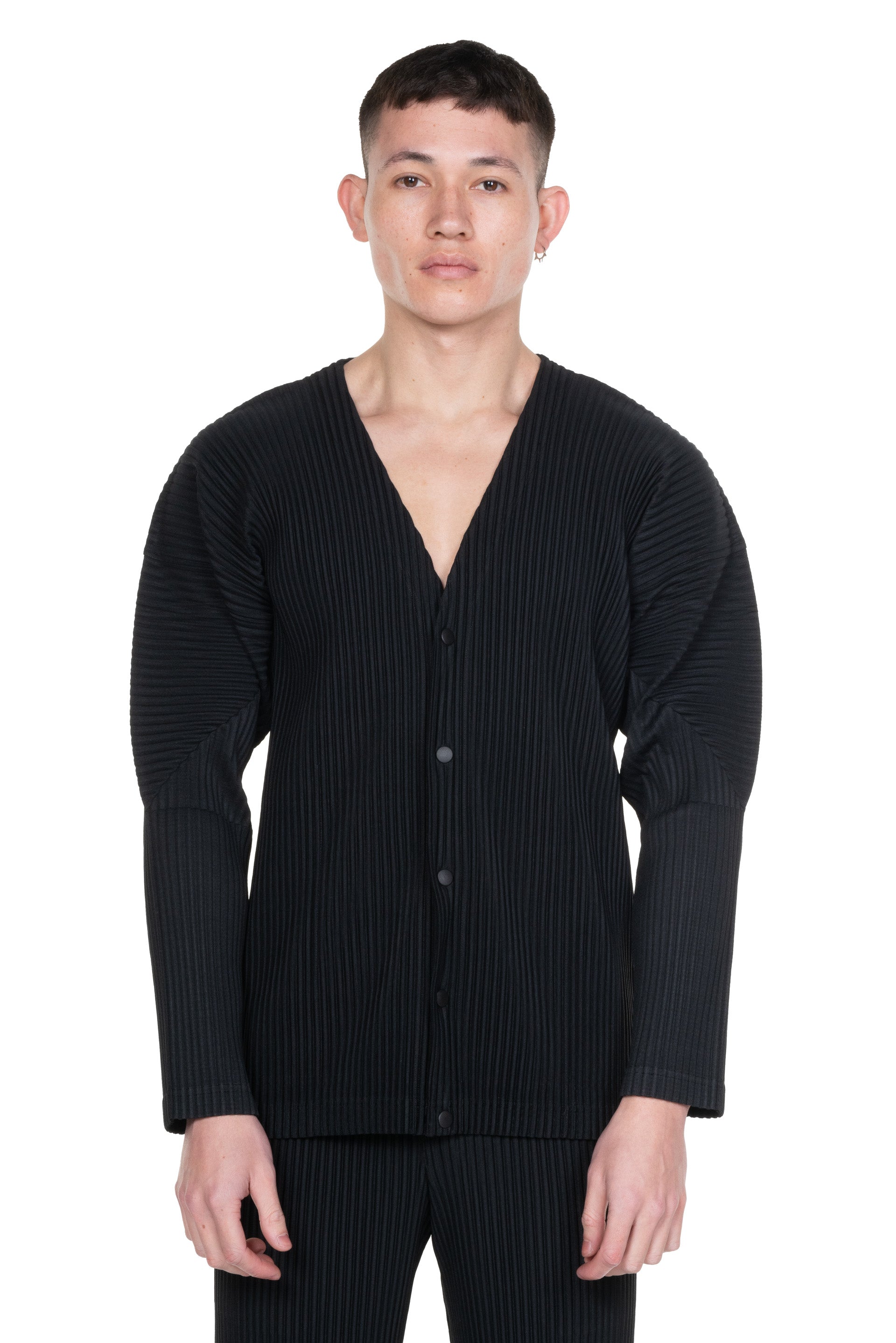 For striking cuts and innovative designs, Homme Plissé plays with dimension and folds to create visually dynamic pieces. With visionary technology and stylistic innovation, Issey Miyake reinterprets conventional staples for today as seen with the Basic Cardigan Black.