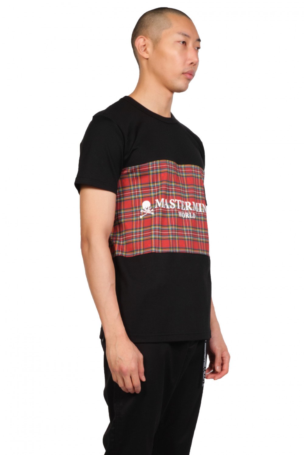 Mastermind World blends elements of punk, street, and utility wear, the brand's contemporary designs feature Masaaki Honma’s signature skull iconography throughout as you can see on the Mastermind World Black & Tartan T-shirt.