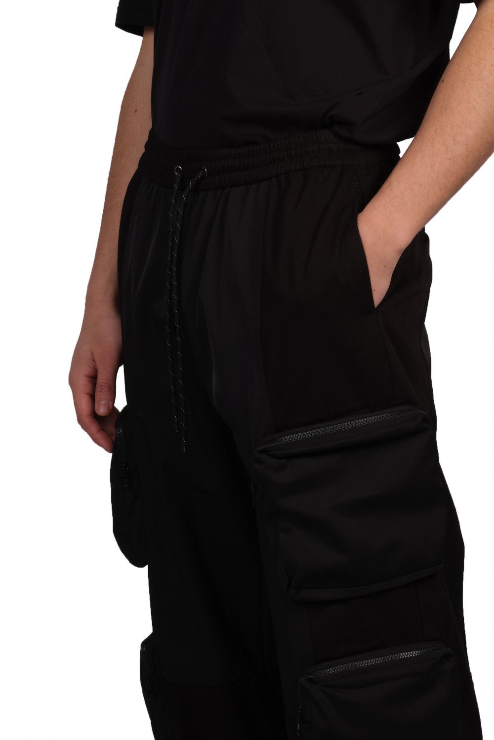 Four side pockets with zip closure. Elastic waistband with drawstring. Double fabric. Drawstring cuffs. Tonal stitching