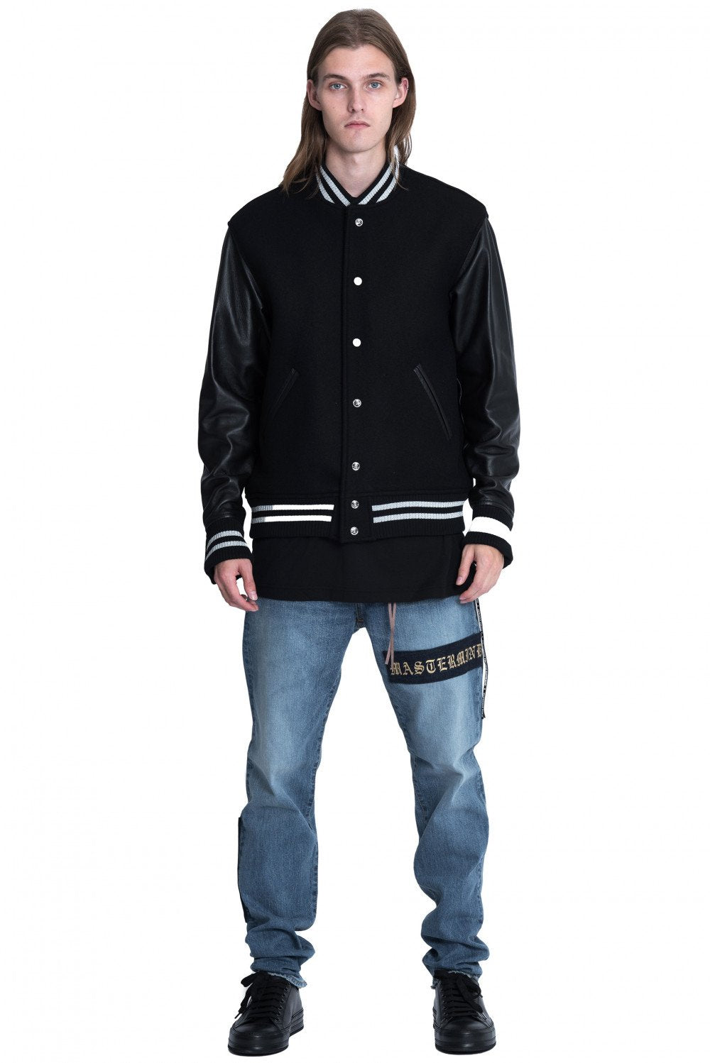 The skull and crossbones motif has now become notorious in luxury streetwear, Mastermind Japan and now Mastermind World has been the original pioneer of the streetwear movement we see today. The Cashmere Varsity Jacket brought in the Black colourway is a staple piece in any streetwear collection.