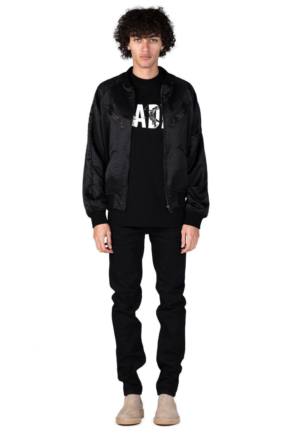 Deconstructed urban style with a rebellious attitude defines the Christian Dada collection at UJNG. The range features streetwear looks with offbeat details and contrasting textures such as the Christian Dada Black Denim Jeans.