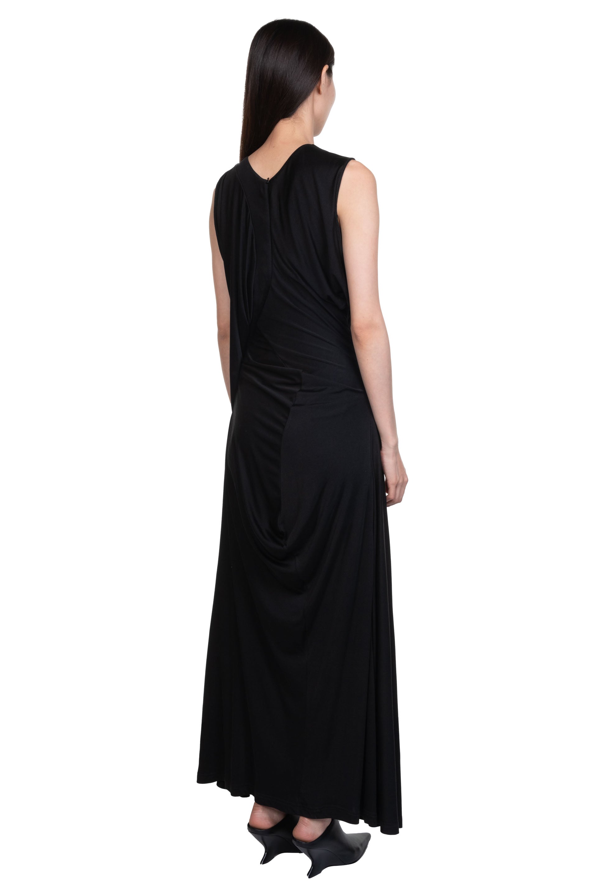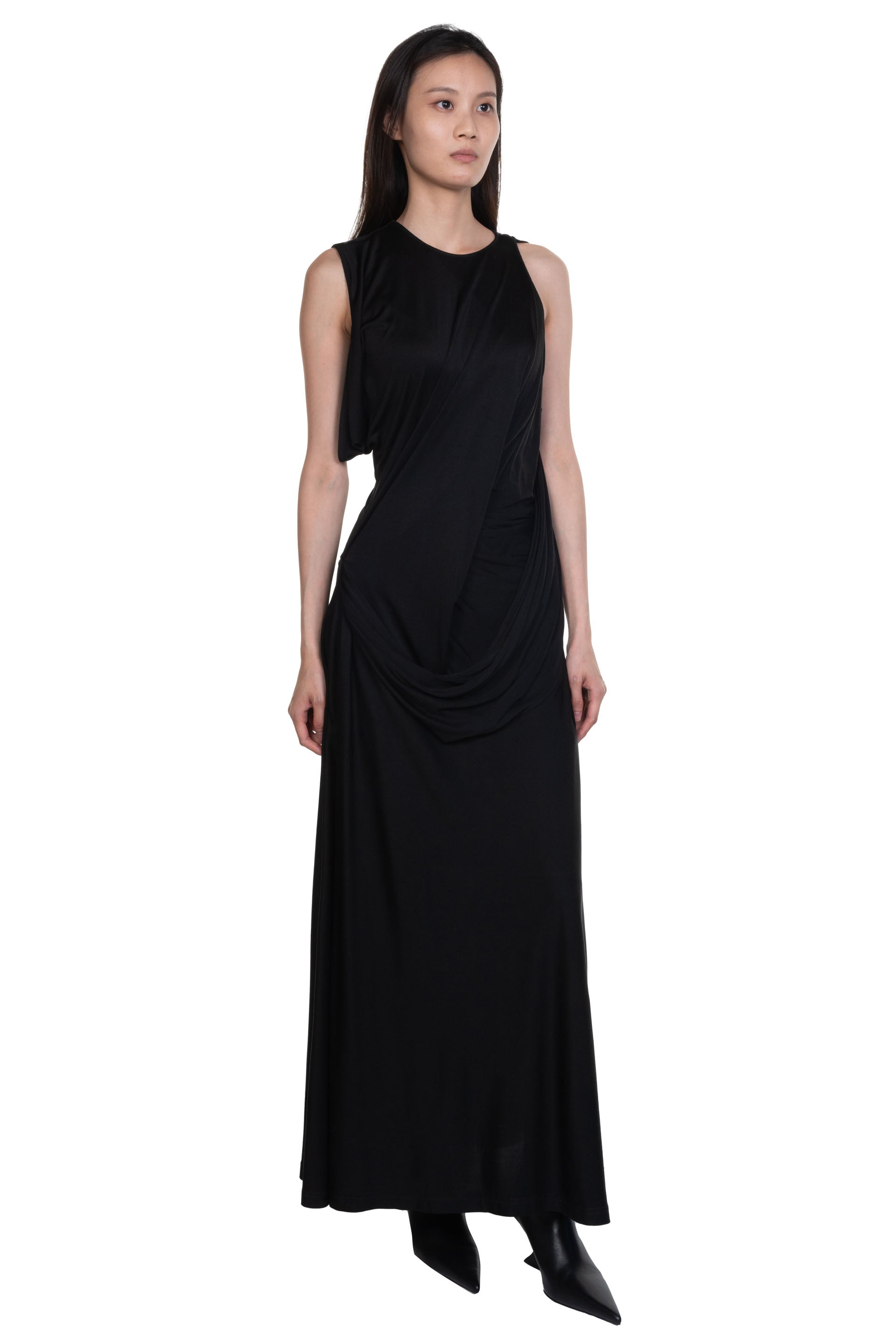 Yehuafan draped dress with details in black. Long sleeves. Soft lightweight silk fabric in black.