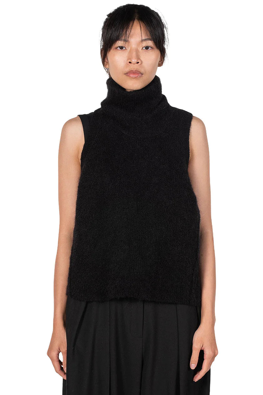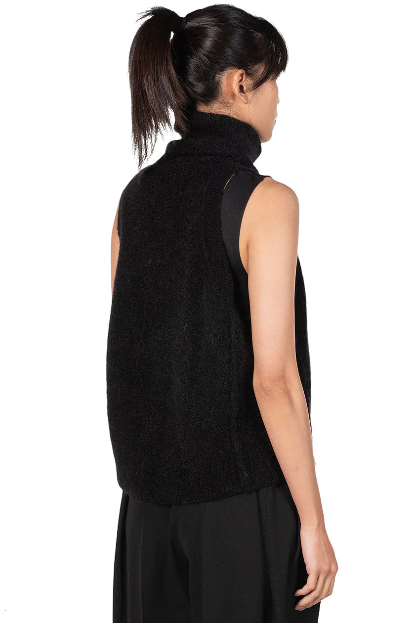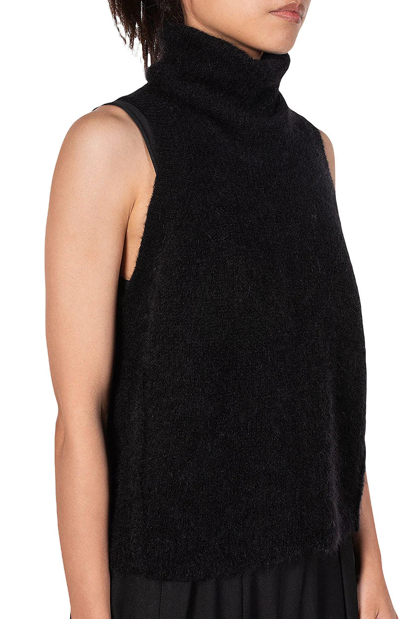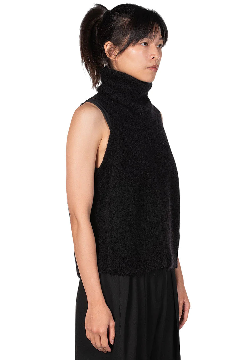 Isabel Benenato Black High Neck Mohair Knit Vest. Sleeveless. High Neck.