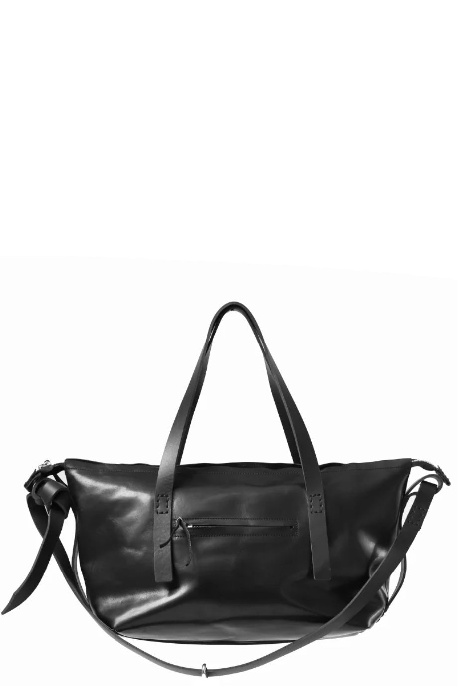 Boris Bidjan Saberi Moulded Horse leather bag in matte black. Beautiful vegetable tanned horse skin. Twin carry handles. Adjustable shoulder strap. Oversized zip closure. Zippered interior compartment. Metal carabiner with cotton strap. Fully lined. Inside pocket compartments. Metallic logo details at string.