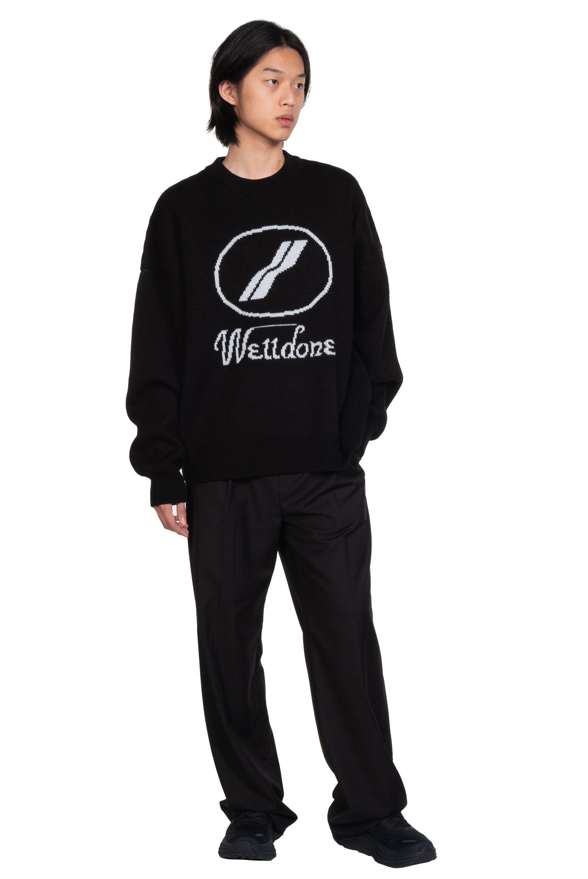 We11done merges late 1990s and early 2000s aesthetics creating a feeling of futurity. Functional, sportive, and sleek, We11done’s versatile designs refine classic elements into contemporary lifestyle pieces. as seen with the Black Logo Sweater.