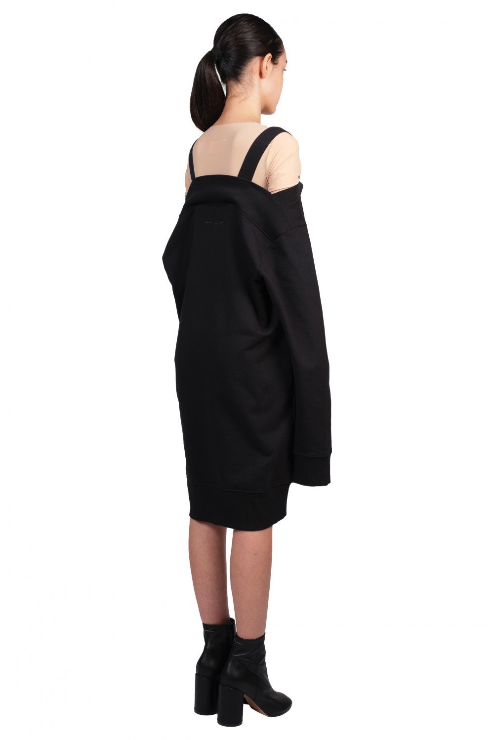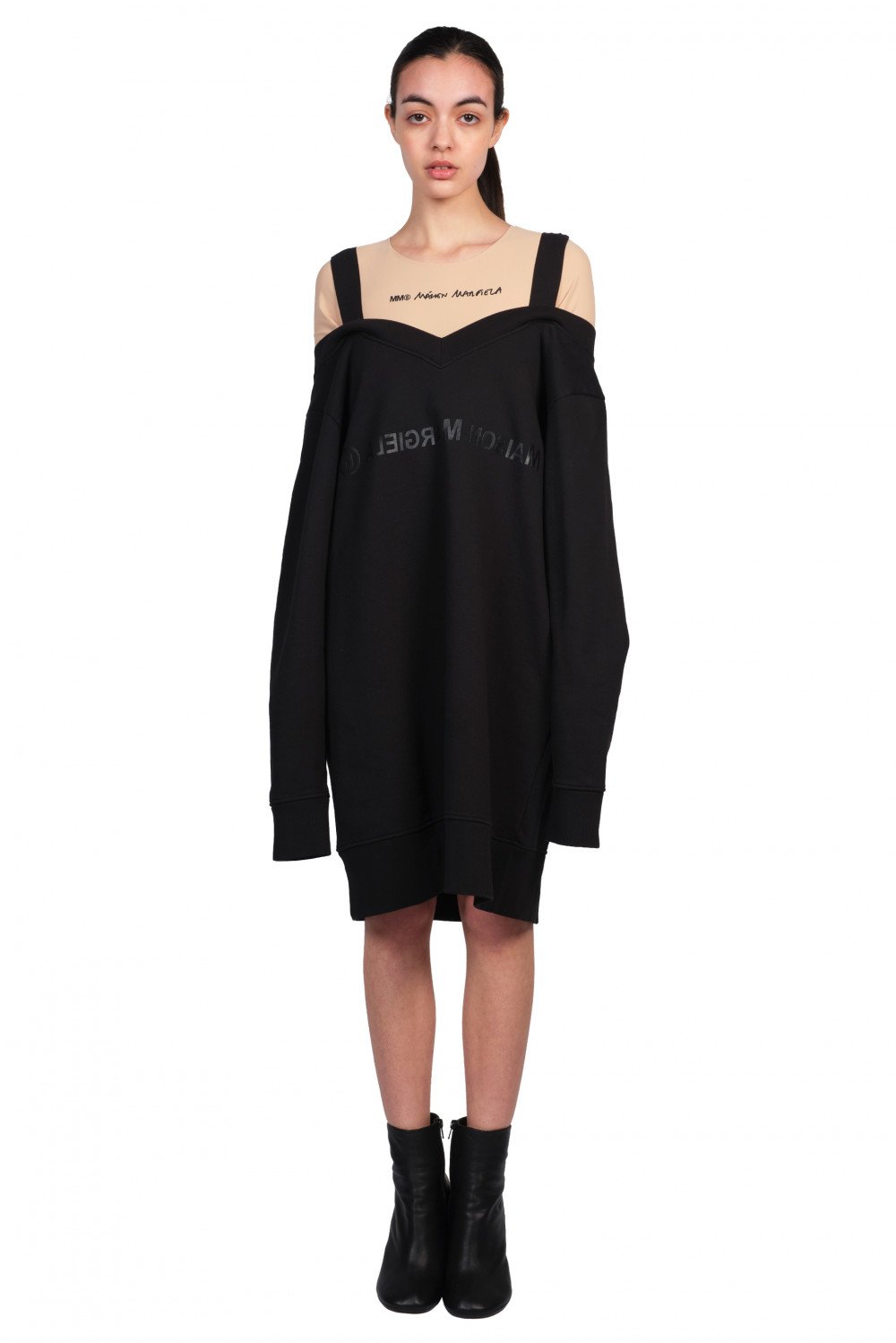 MM6 is known for its sporty ready-to-wear and off-beat accessories, more casual, street-inspired take on the Maison's intellectual approach to luxury as seen in the MM6 Black Logo Sweatshirt Dress.