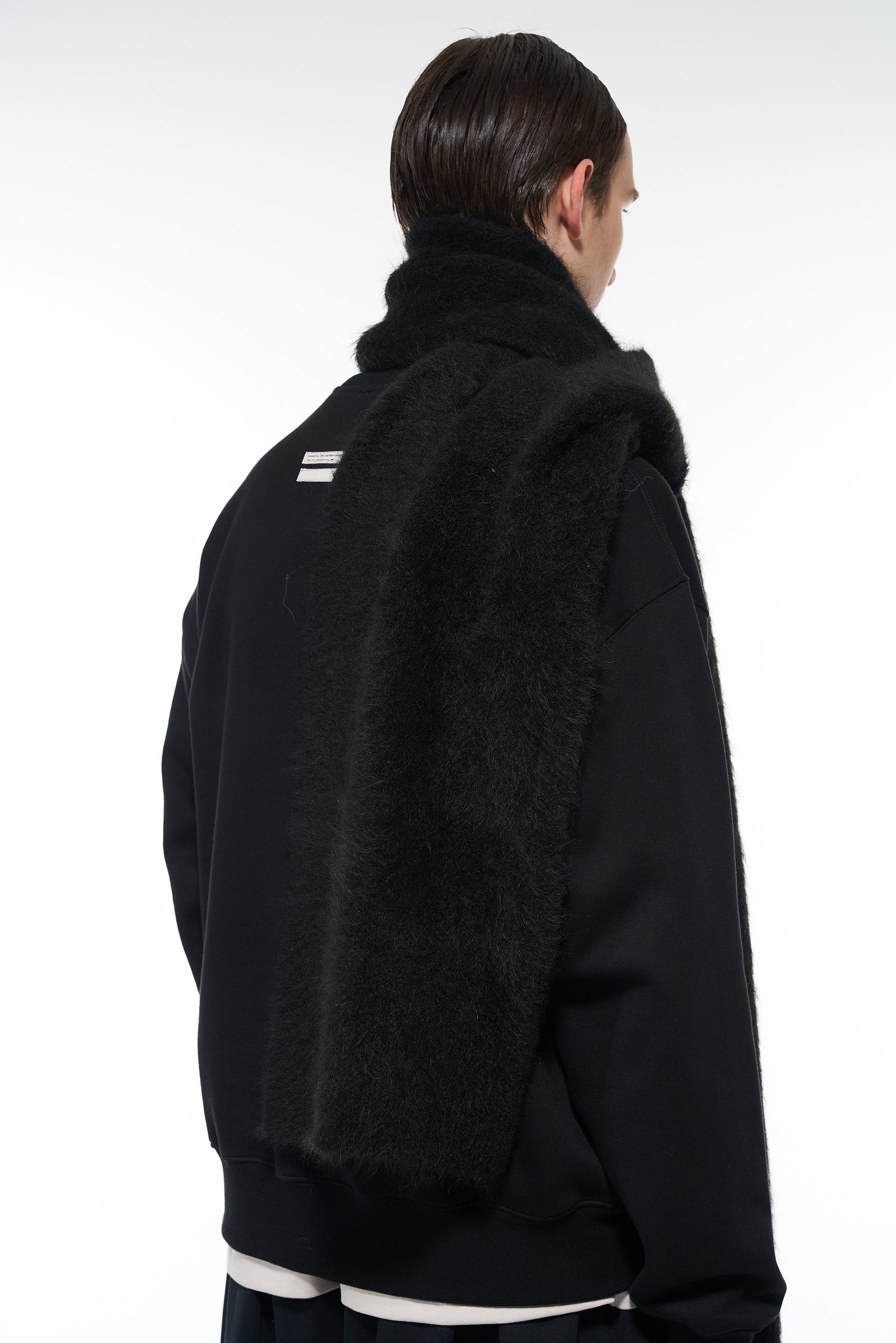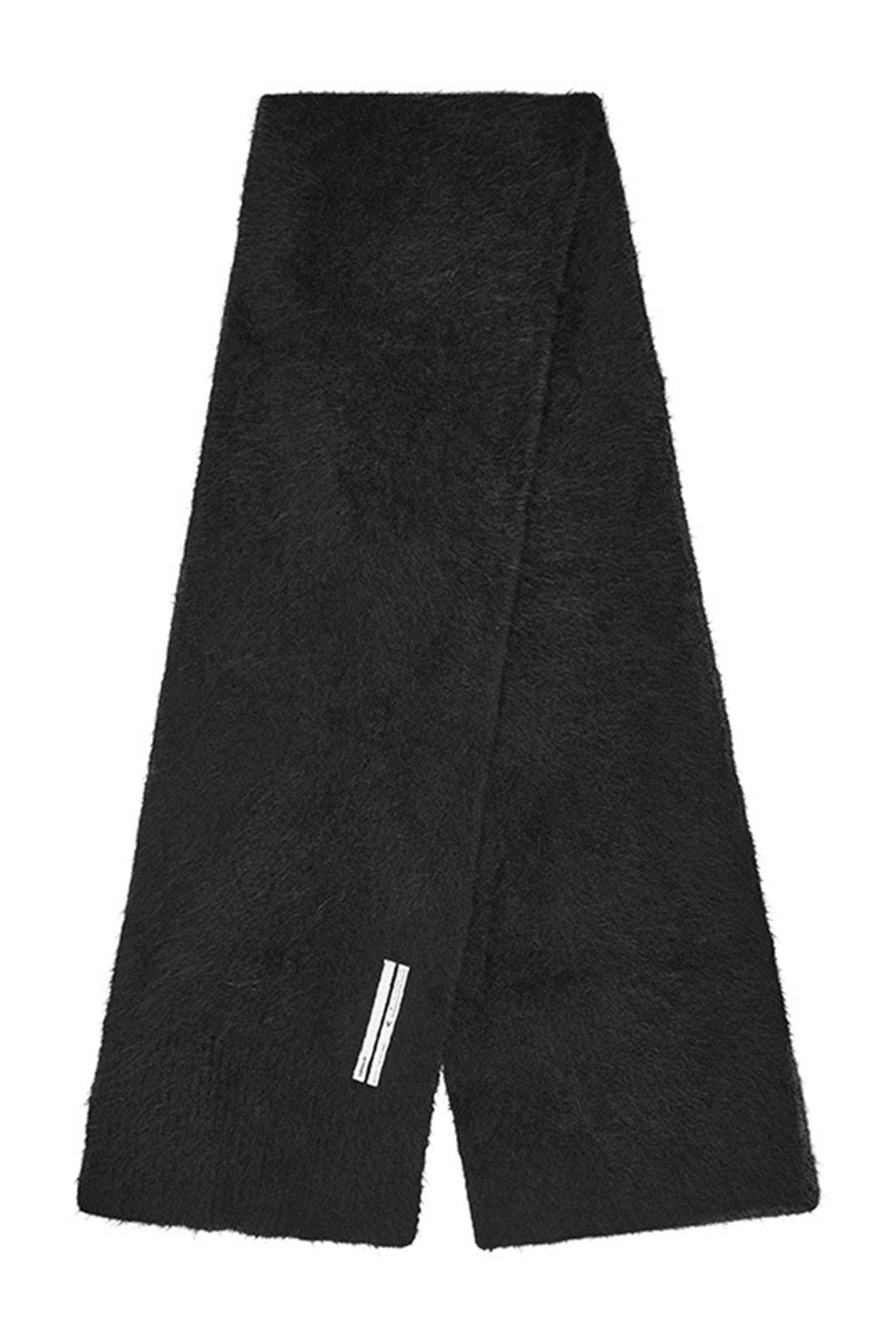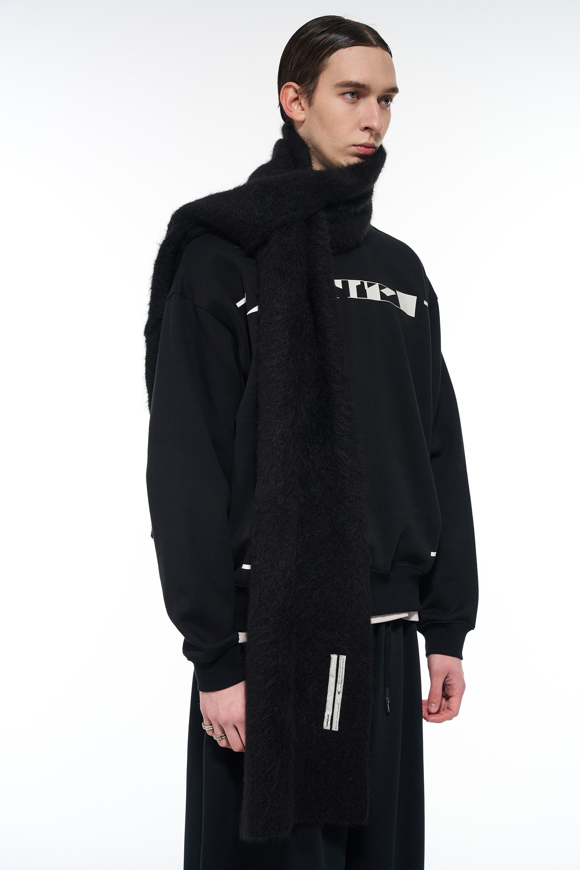 Black Overlength Scarf.Measures 200 CM X 32 CM with spliced loop styling.