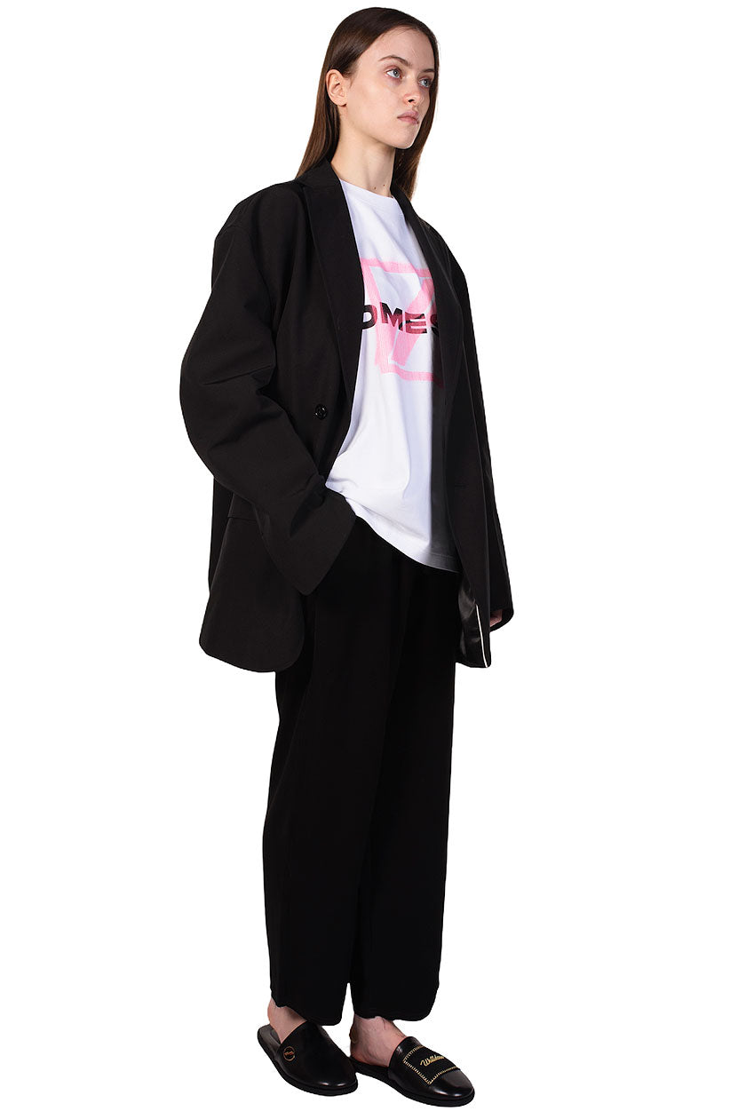 We11done merges late 1990s and early 2000s aesthetics creating a feeling of futurity. Functional, sportive, and sleek, We11done’s versatile designs refine classic elements into contemporary lifestyle pieces as seen with the Oversized Logo Blazer.
