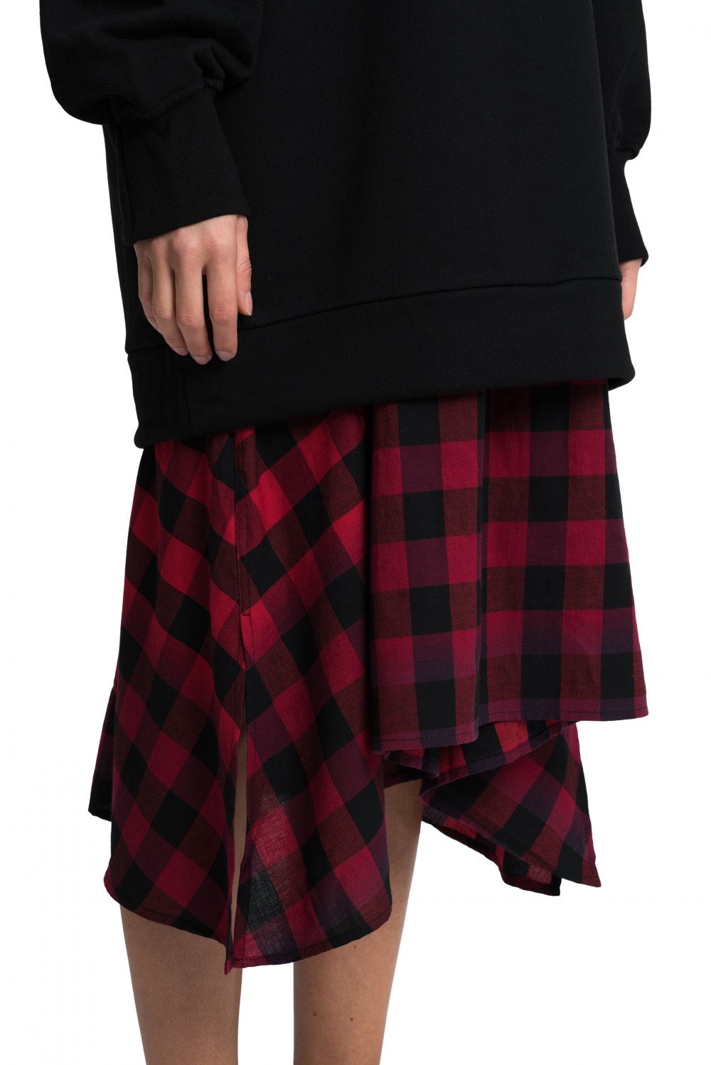 ‘Fantasy and reality are lapped over each other’ are the words behind the AW18 collection from Juun. J. The collection plays with fabric layering, embroidery and printing as seen in the Black Oversized Layered Sweatshirt Dress.