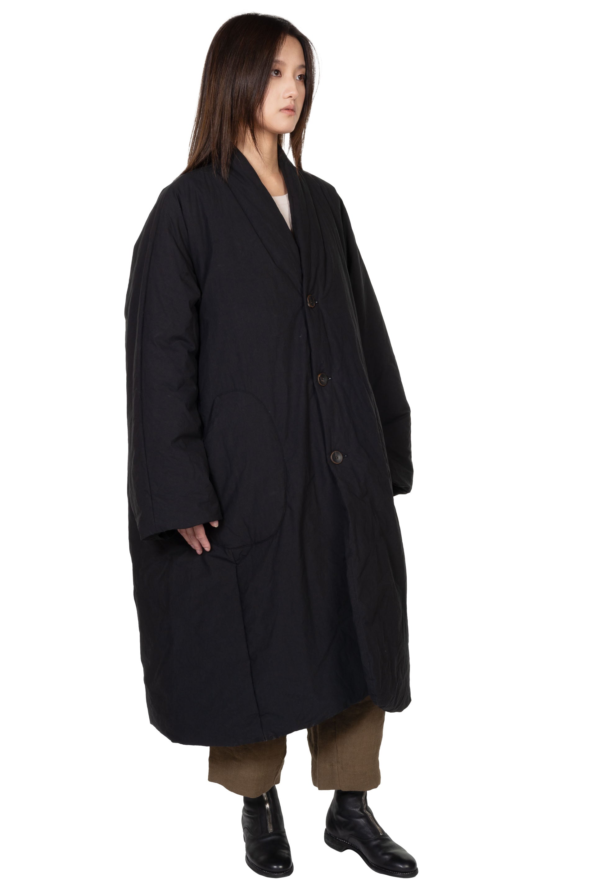 Kar Studio is an independent interior design studio, furniture and clothing brand exploring the cause and effect of aesthetics, integrating tradition and modernity. Kar is presenting modern design with Oriental philosophy. Inspired by art, literature, memories and emotions Kar focuses on design sensibility aiming to convey emotion that will resonate with people as seen with the Black Padded Cotton Long Coat.