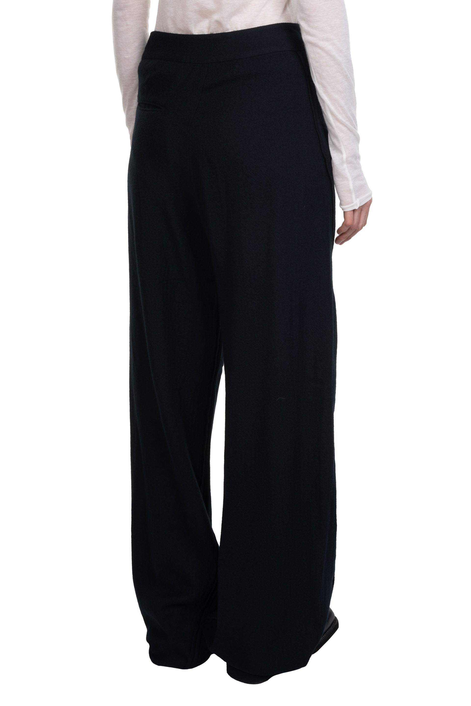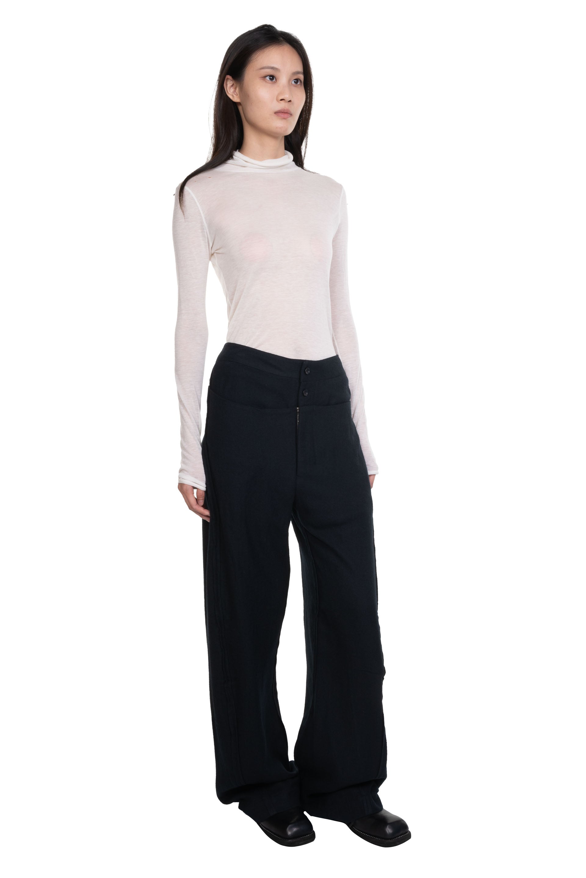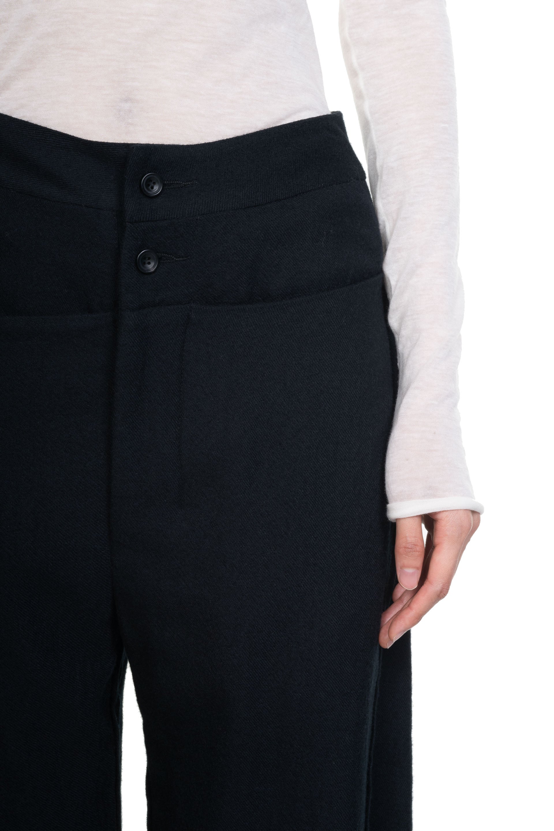 Yehuafan pants in Black colour: Two buttons closure at front. Two side pockets. Soft wool fabric.