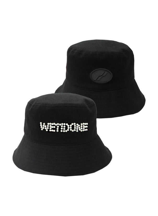We11done merges late 1990s and early 2000s aesthetics creating a feeling of futurity. Functional, sportive, and sleek, We11done’s versatile designs refine classic elements into contemporary lifestyle pieces as seen with the Black paneled bucket hat. Features pearl detailing above the brim. Tonal stitching throughout.