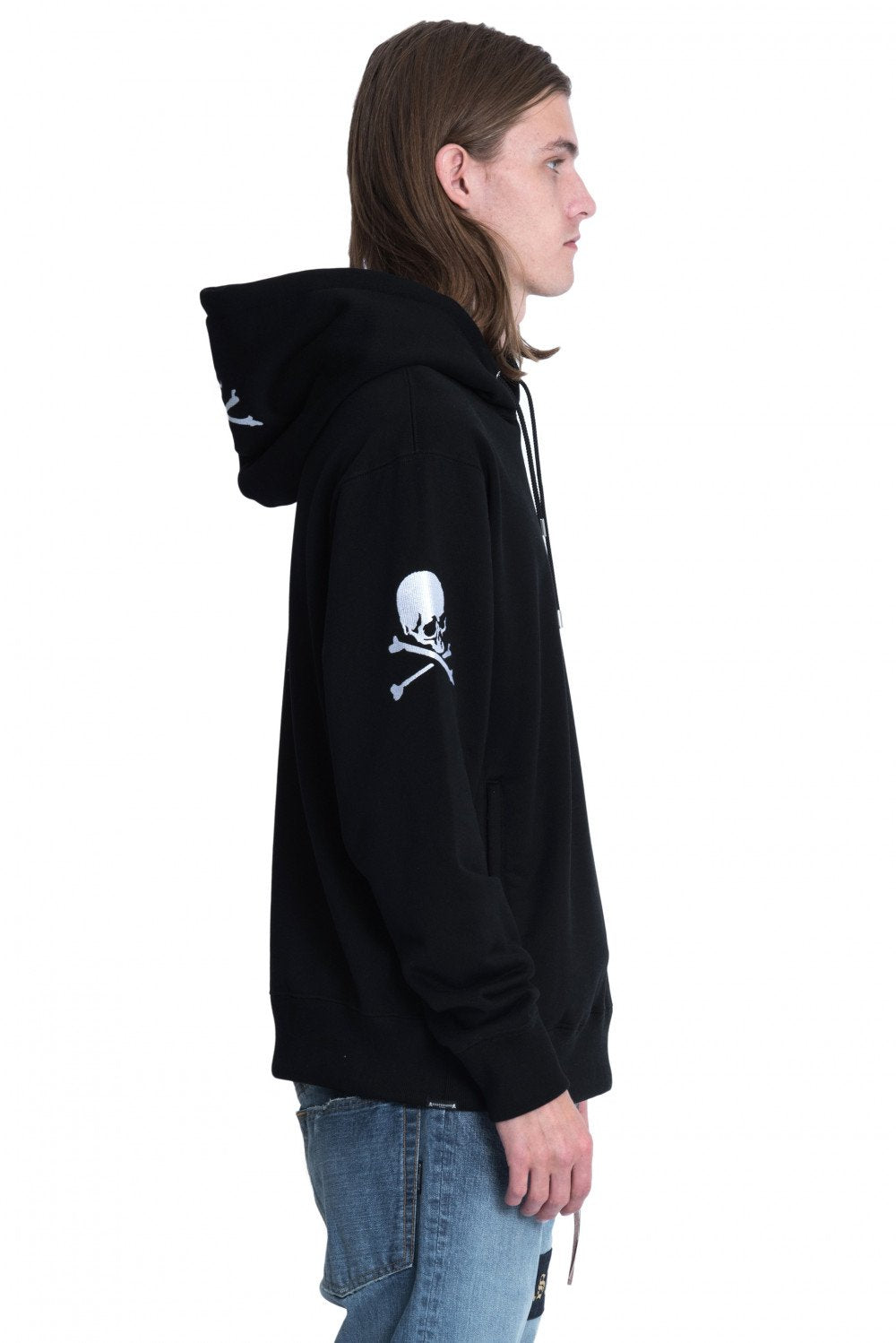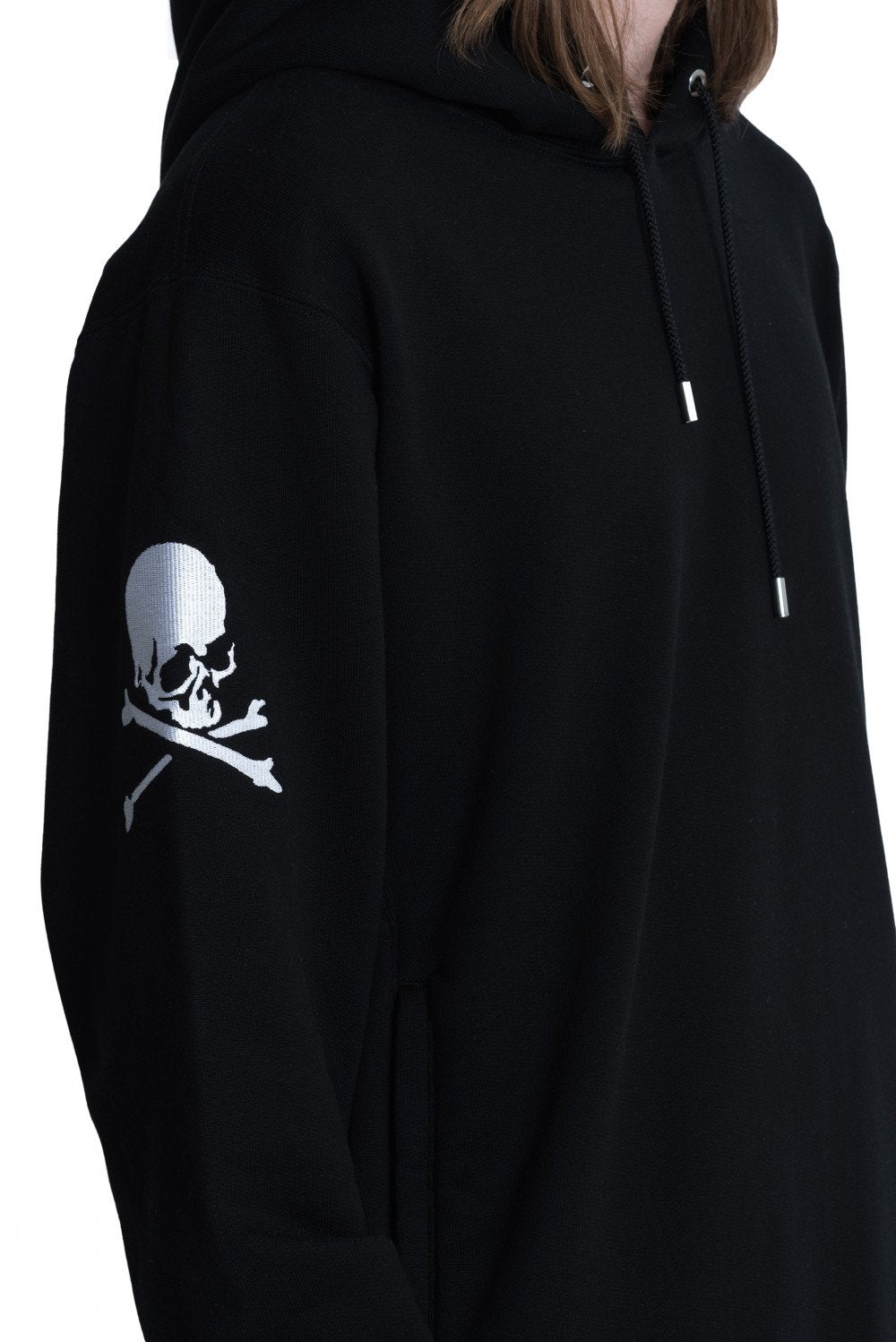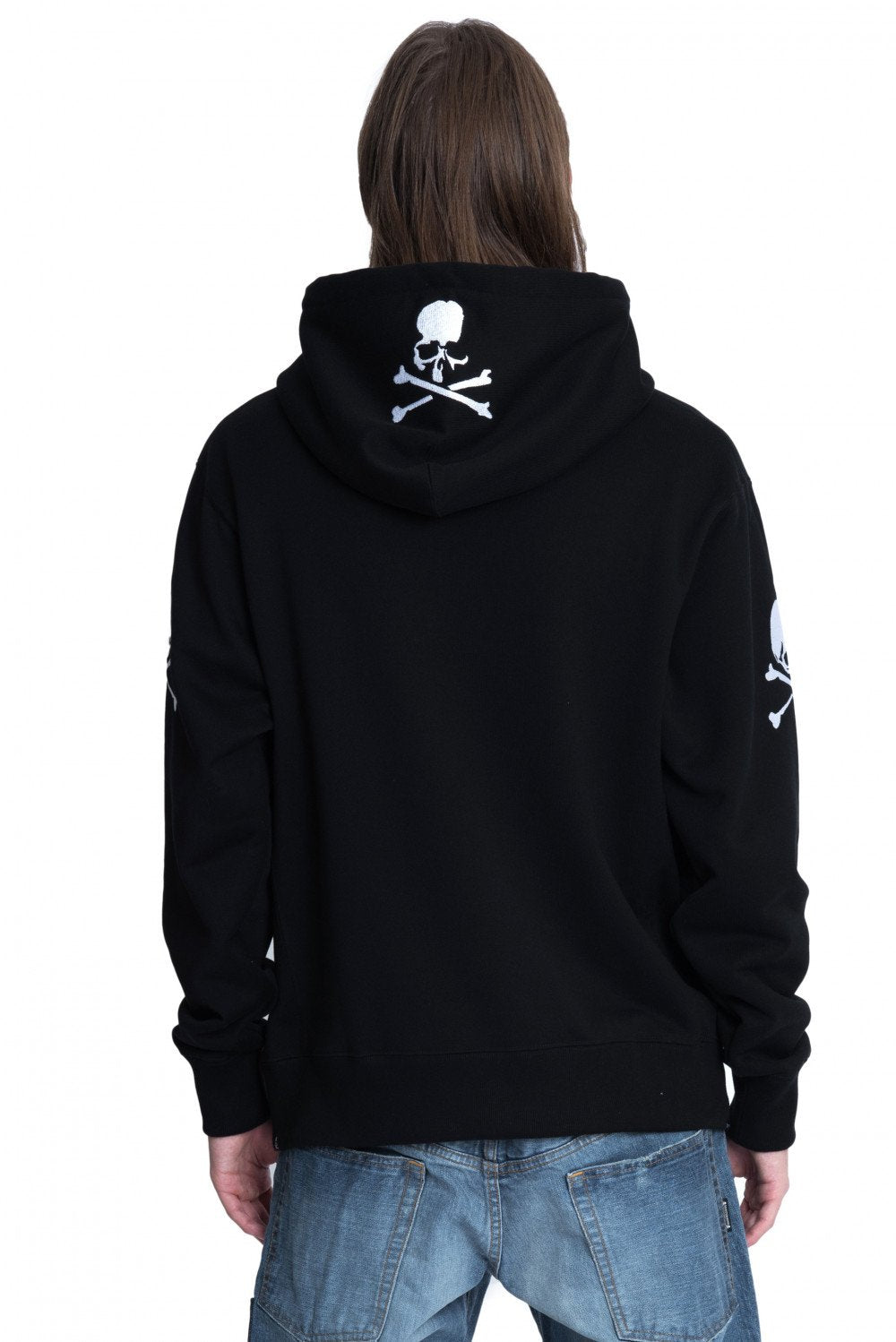 - Embroidered skull on sleeves and hood