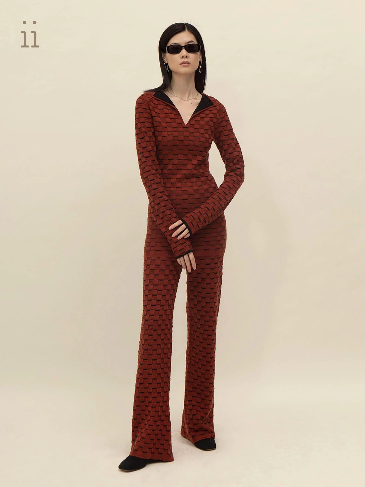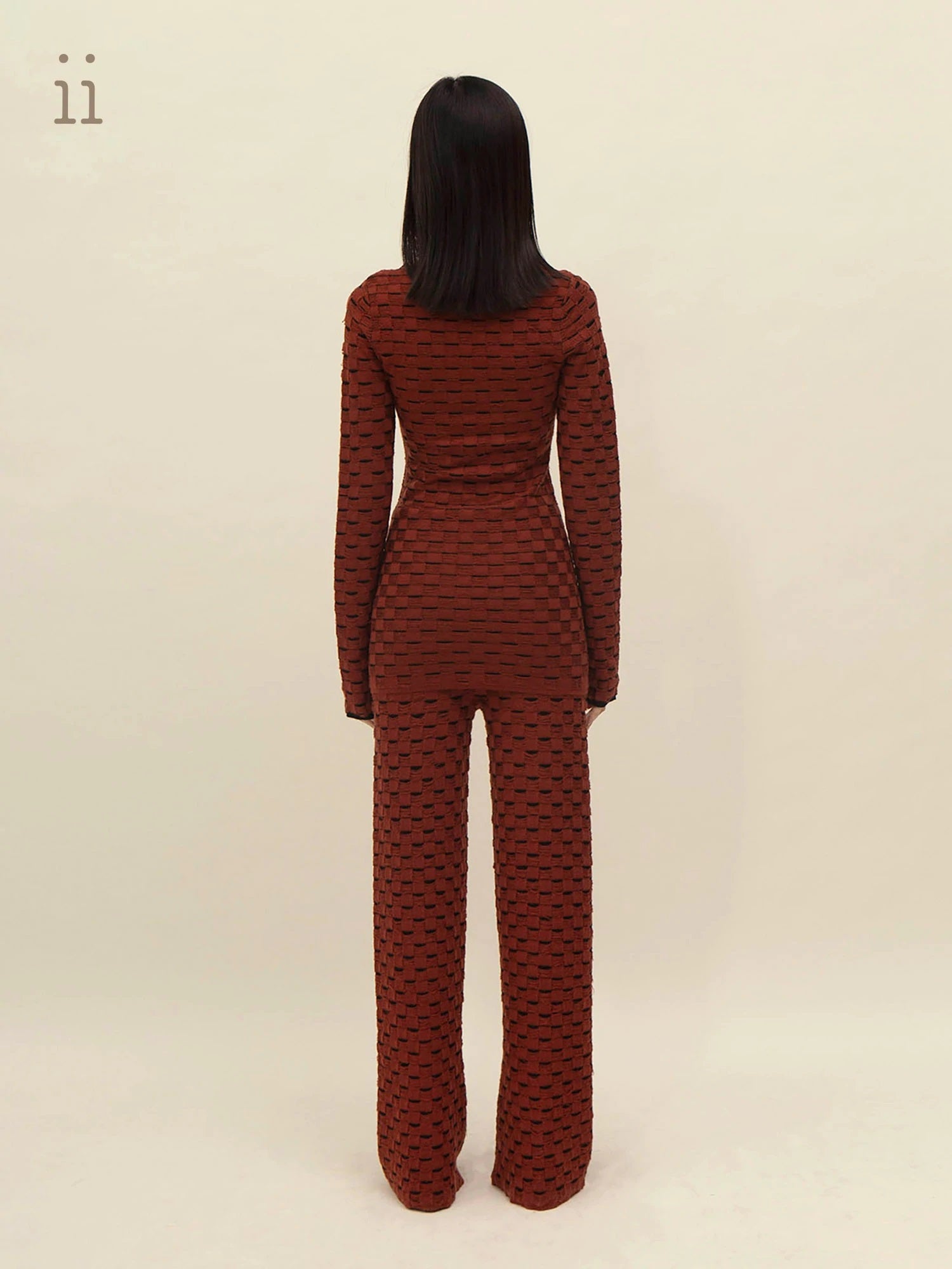 ii delivers a sense of originality, simplicity, spontaneity and a hint of childlike innocence pushing boundaries among ages to present qualitative collections with timeless touches designed for independent individuals as seen with the Black Tea-Check Knit Pants.