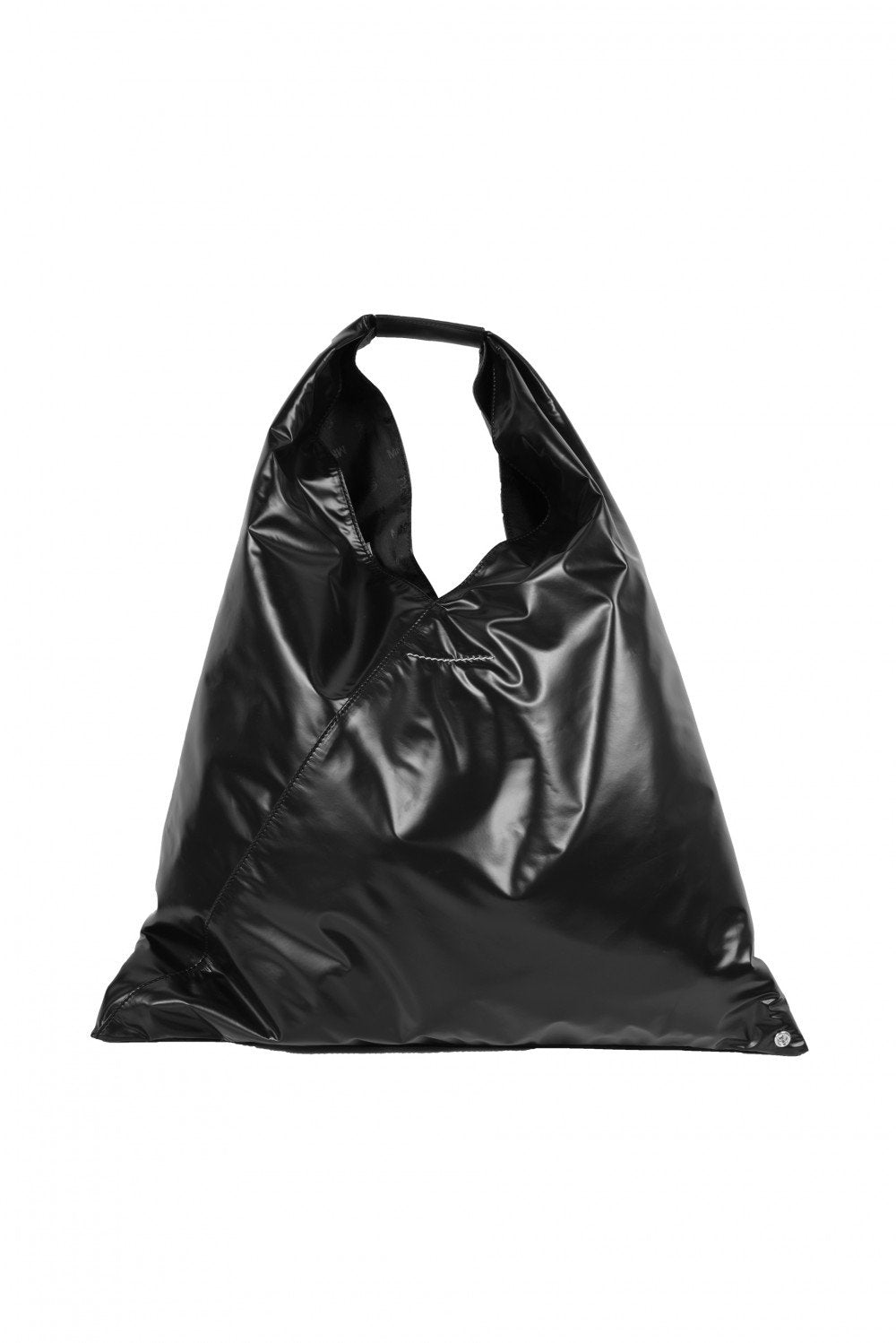 MM6 is known for its sporty ready-to-wear and off-beat accessories, more casual, street-inspired take on the Maison's intellectual approach to luxury as seen in the MM6 Black Triangle Tote.