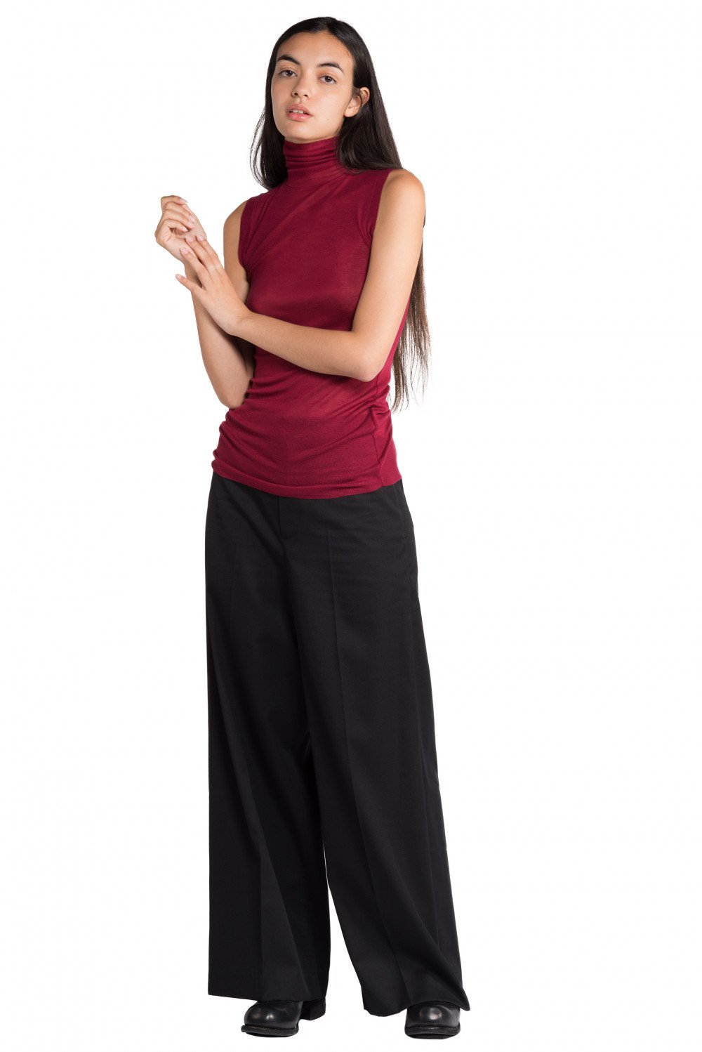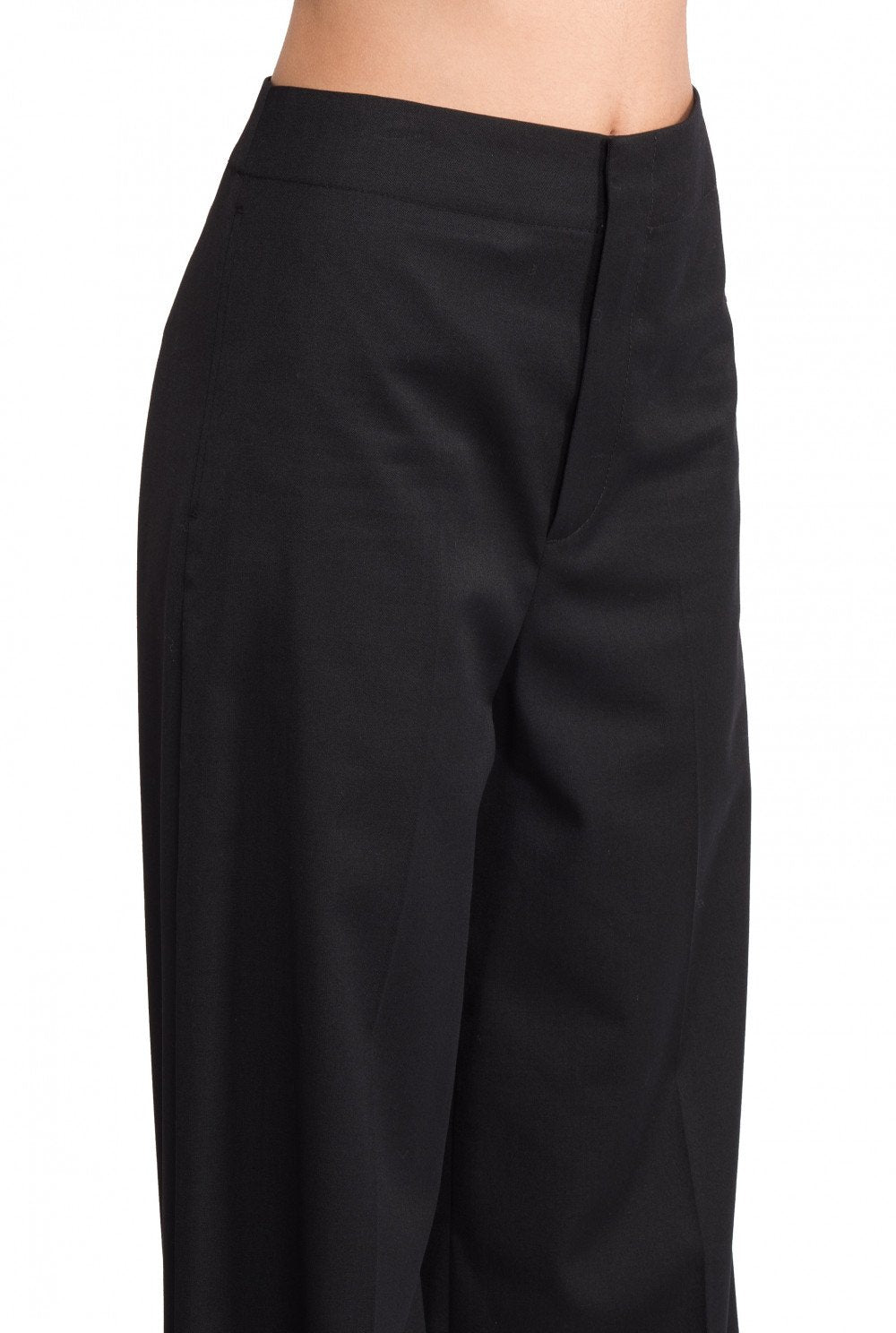 It is a bootcut pants of thick cotton. The low-rise waistline fits the thighs slightly and the hem troughs naturally spread, creating a vintage mood. A simple and stylish drop fit makes the legline slim and long.