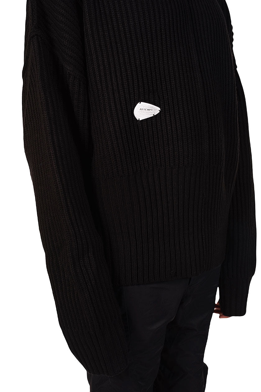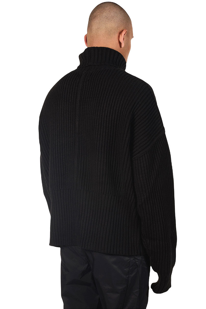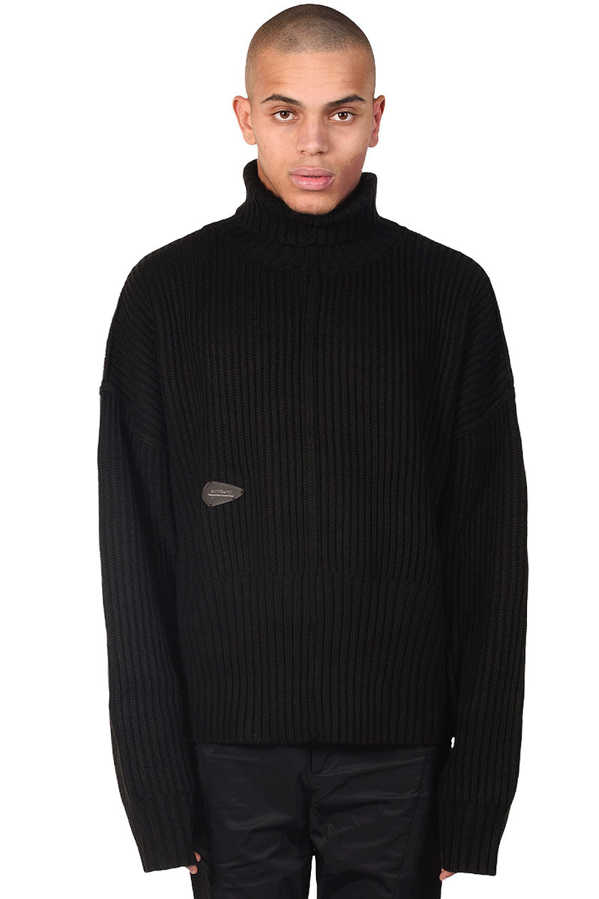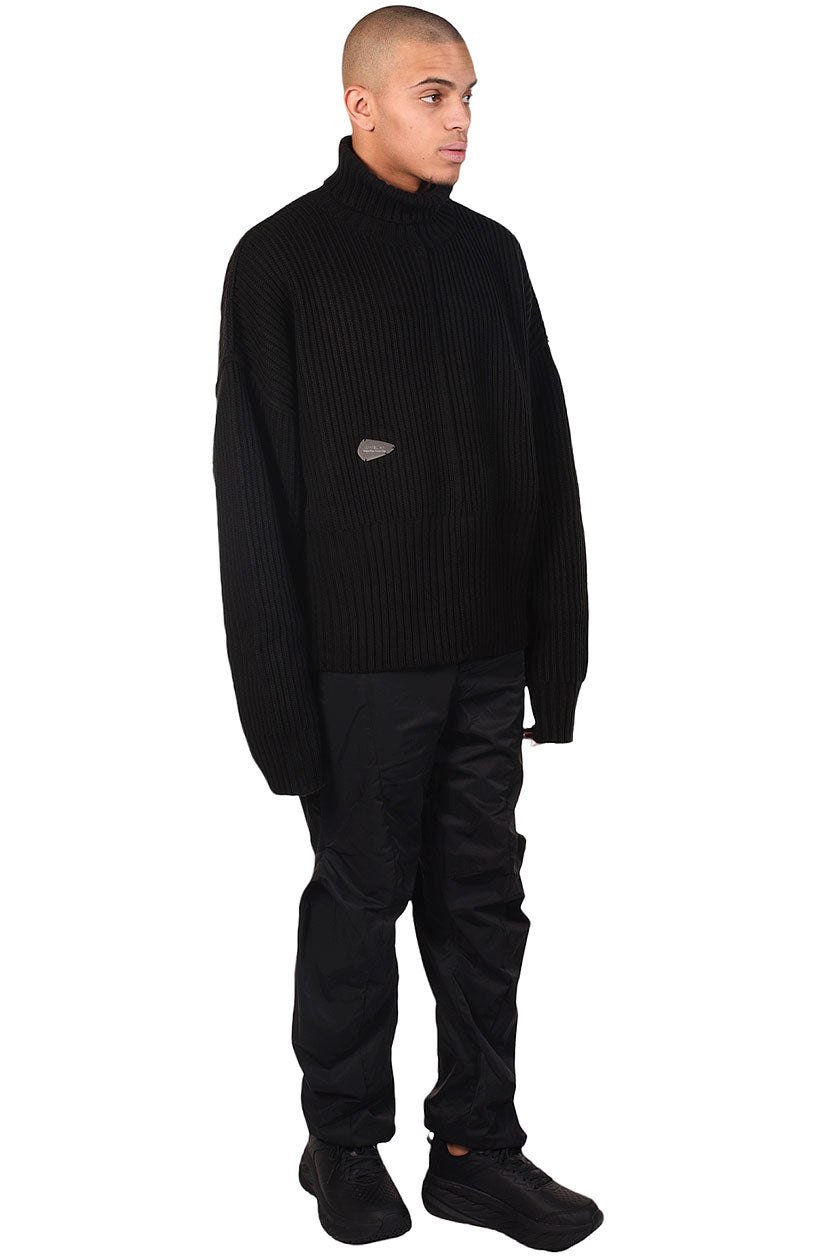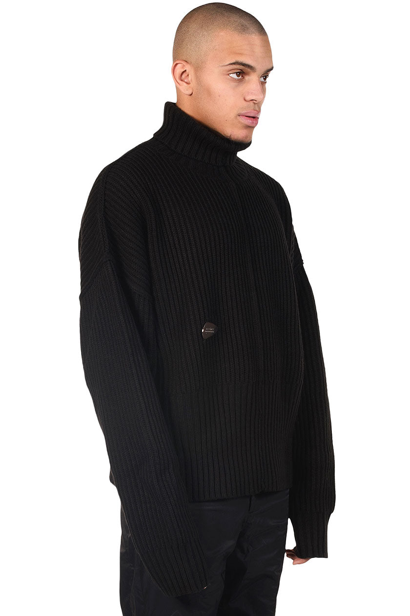 Black Turtle Neck Sweater.Oversized fit. Metal logo tag at front.