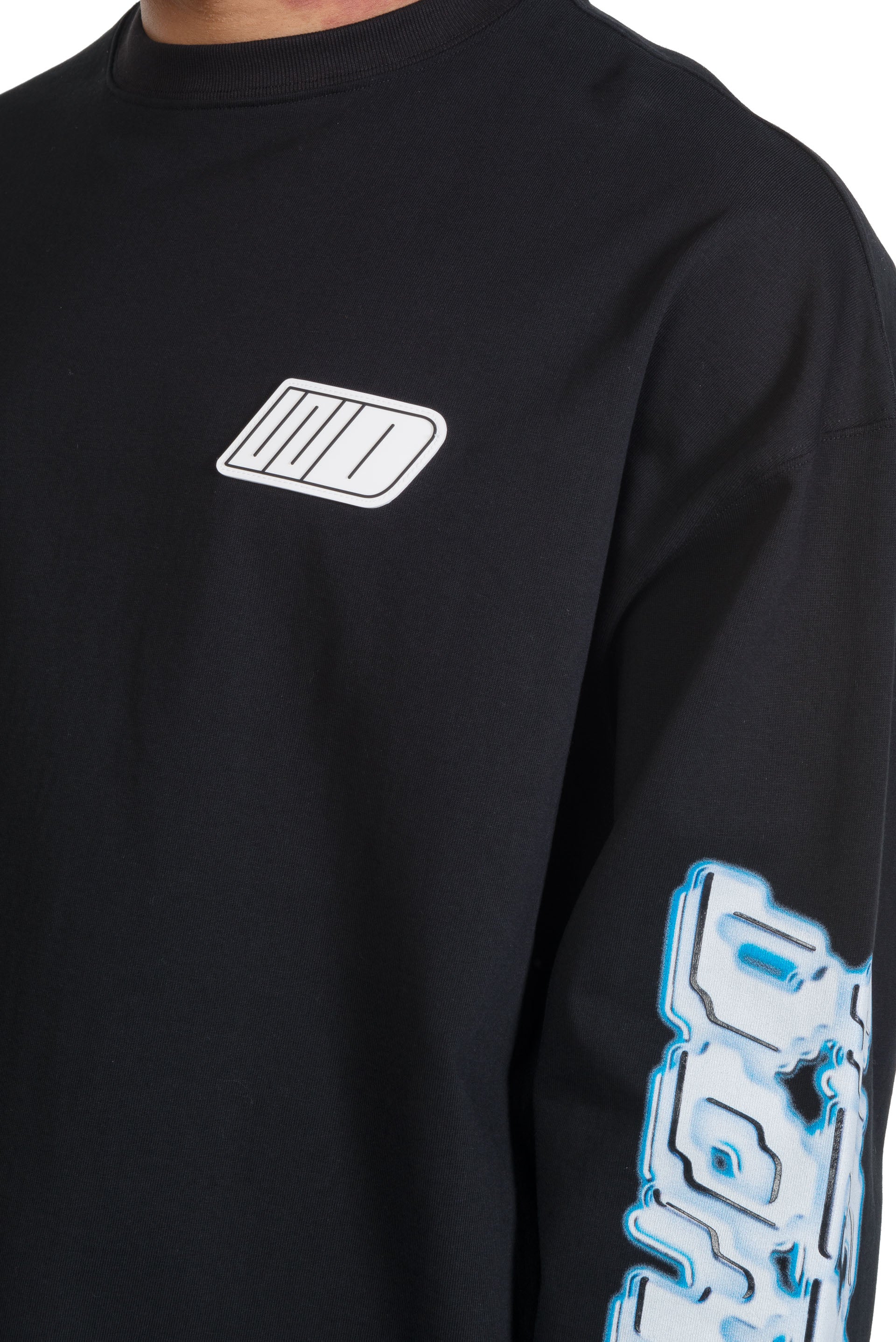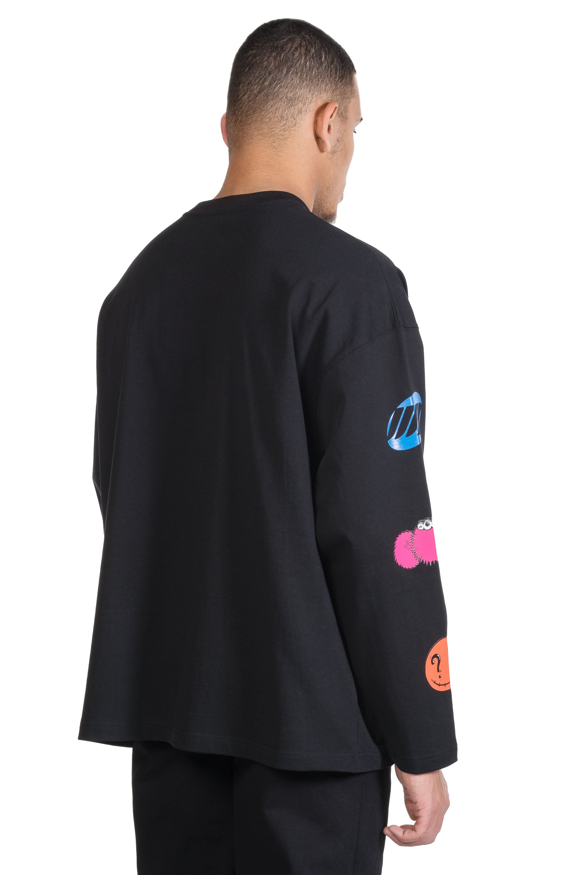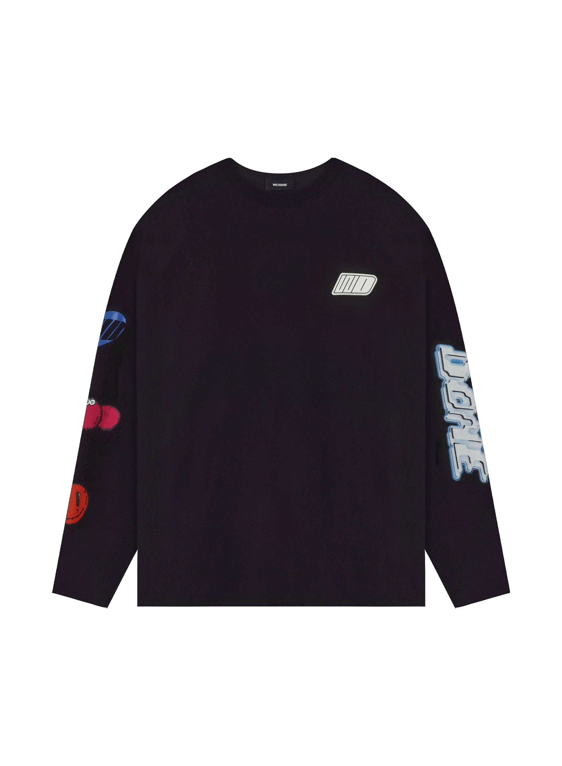 We11done merges late 1990s and early 2000s aesthetics creating a feeling of futurity. Functional, sportive, and sleek, We11done’s versatile designs refine classic elements into contemporary lifestyle pieces. as seen with the Black We11done Character Logo Long Sleeve T-Shirt.