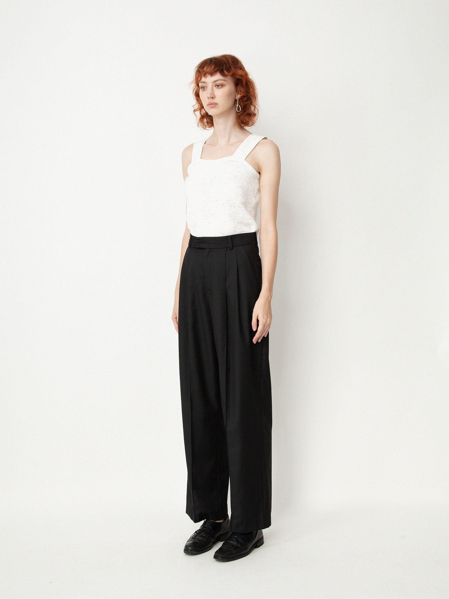 ii delivers a sense of originality, simplicity, spontaneity and a hint of childlike innocence pushing boundaries among ages to present qualitative collections with timeless touches designed for independent individuals as seen with the Black-Wool Suit Trousers.