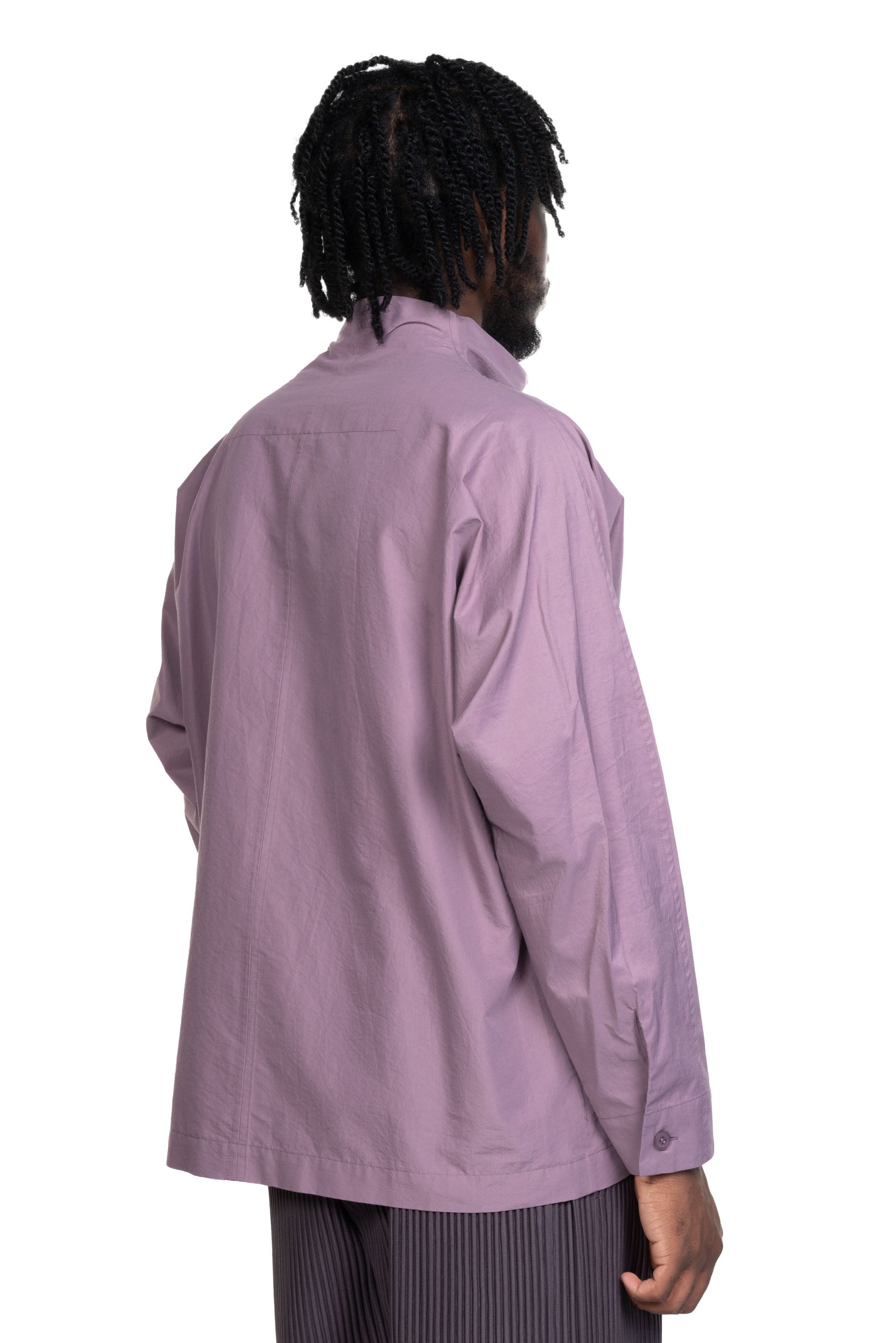 This lavender shirt features a two-way zip closure, a mock neckline and chest pocket on the left side. Made from a uniquely textured fabric BLANK SHIRT is inspired by the work of Ronan Bouroullec.